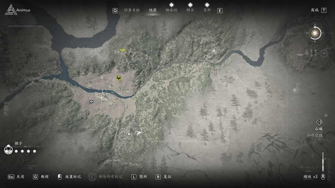 城池宝箱在鸟瞰点楼下,狩野图在城池右上角。