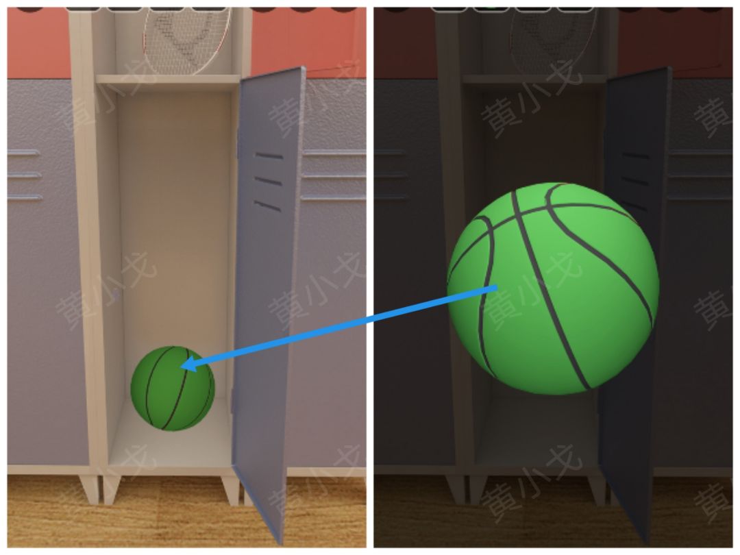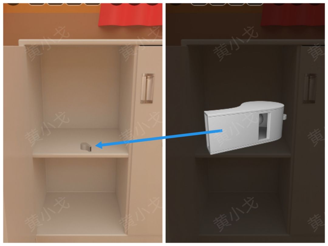 12.点击柜子左侧柜门上的密码锁,根据[收纳柜]场景球架上球的比例线索,调整密码锁