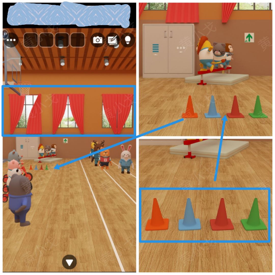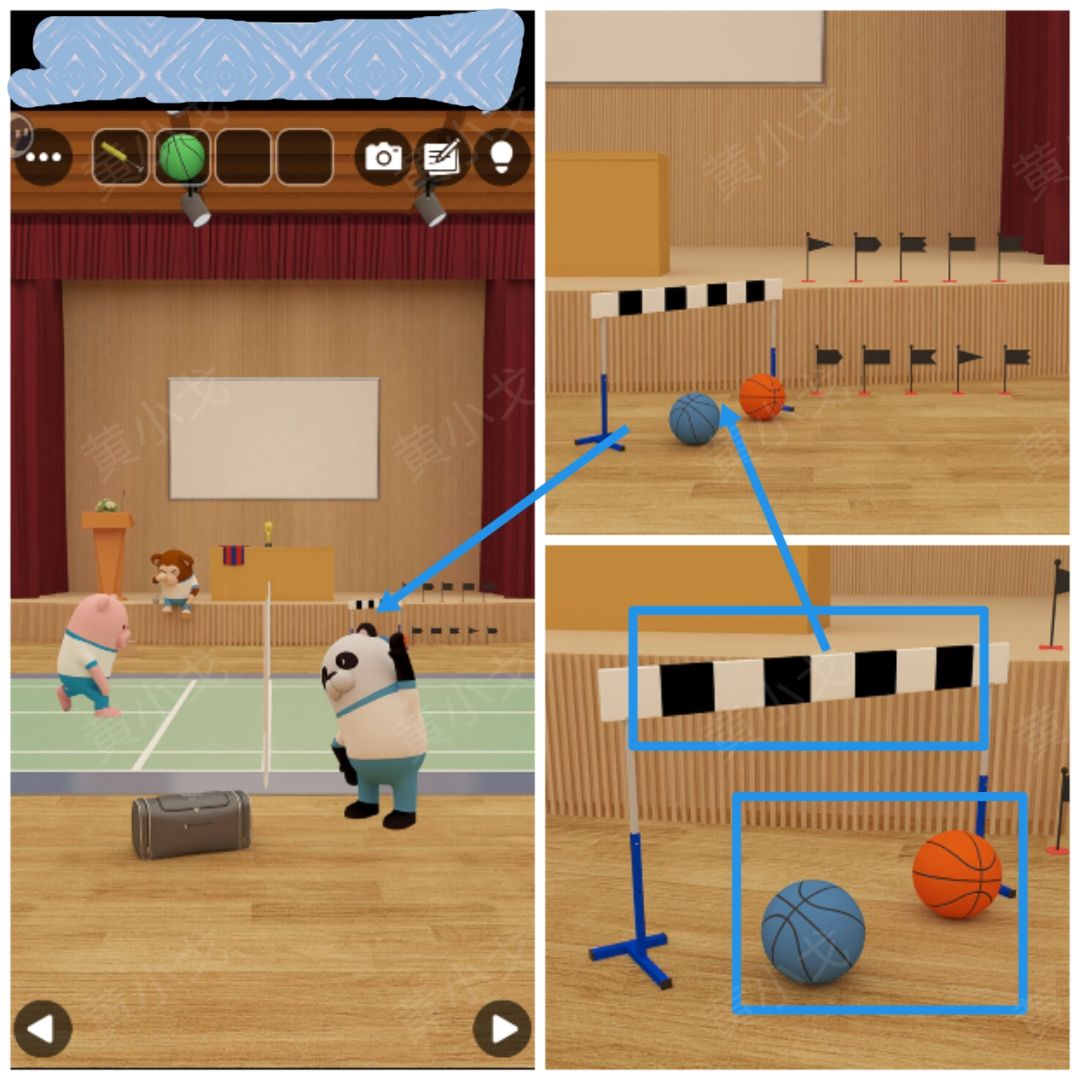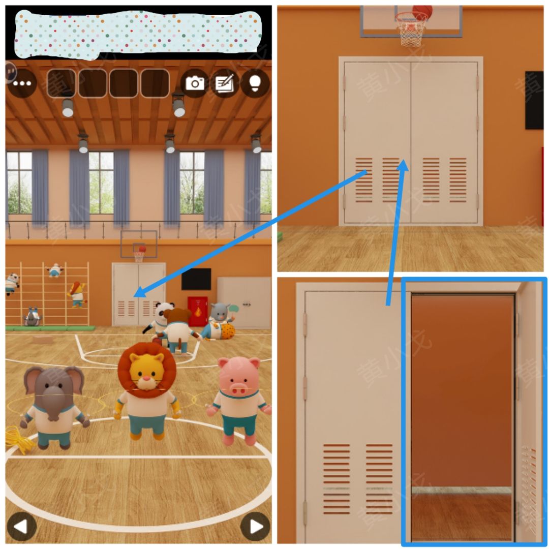 🔶[篮球场]三只动物的位置对应密码锁按钮的位置;高度对应[排球场]击打排球的高度