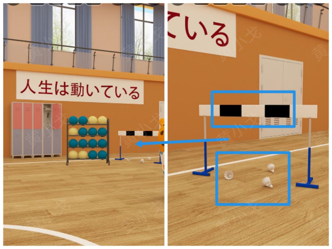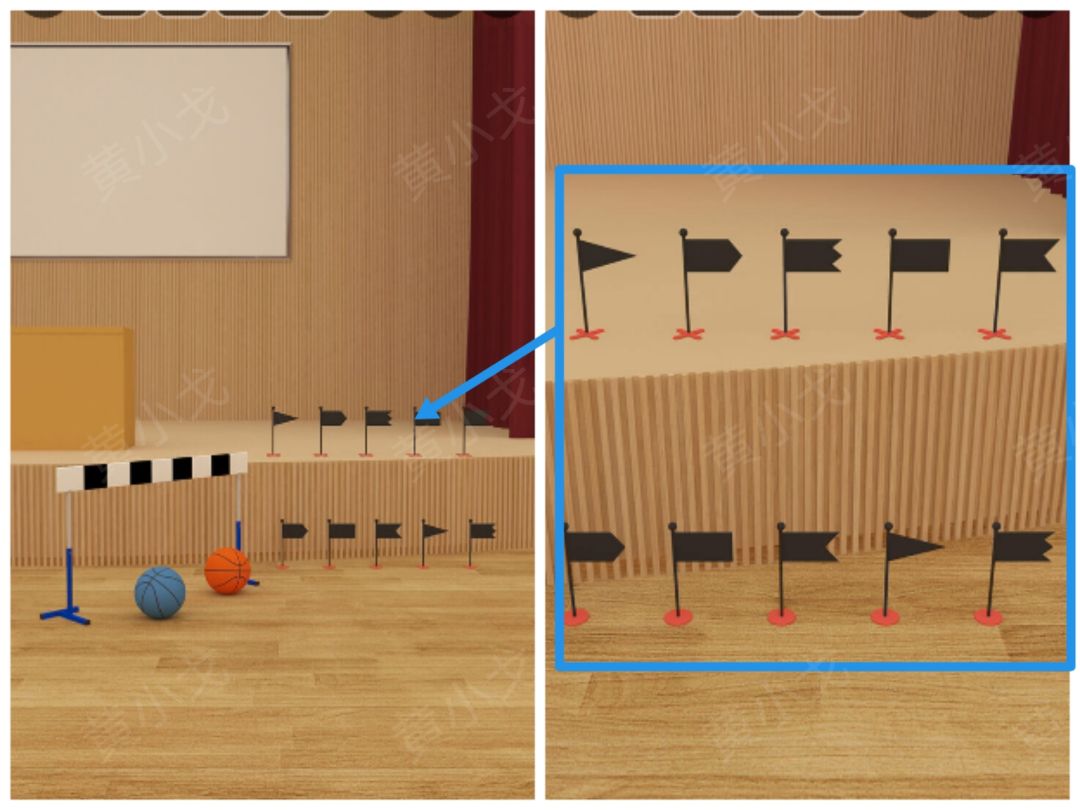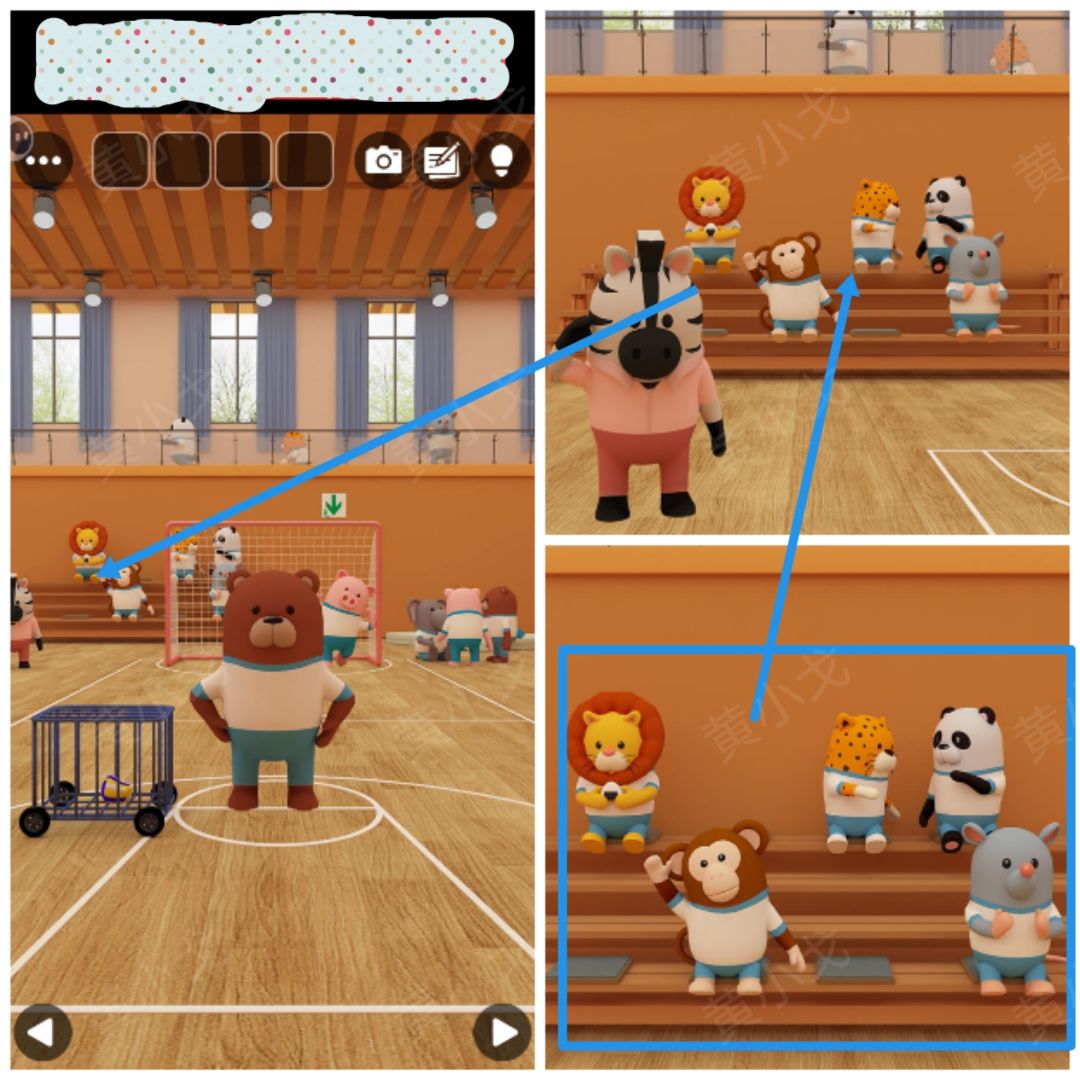 🔶[篮球场]三只动物的位置对应密码锁按钮的位置;高度对应[排球场]击打排球的高度