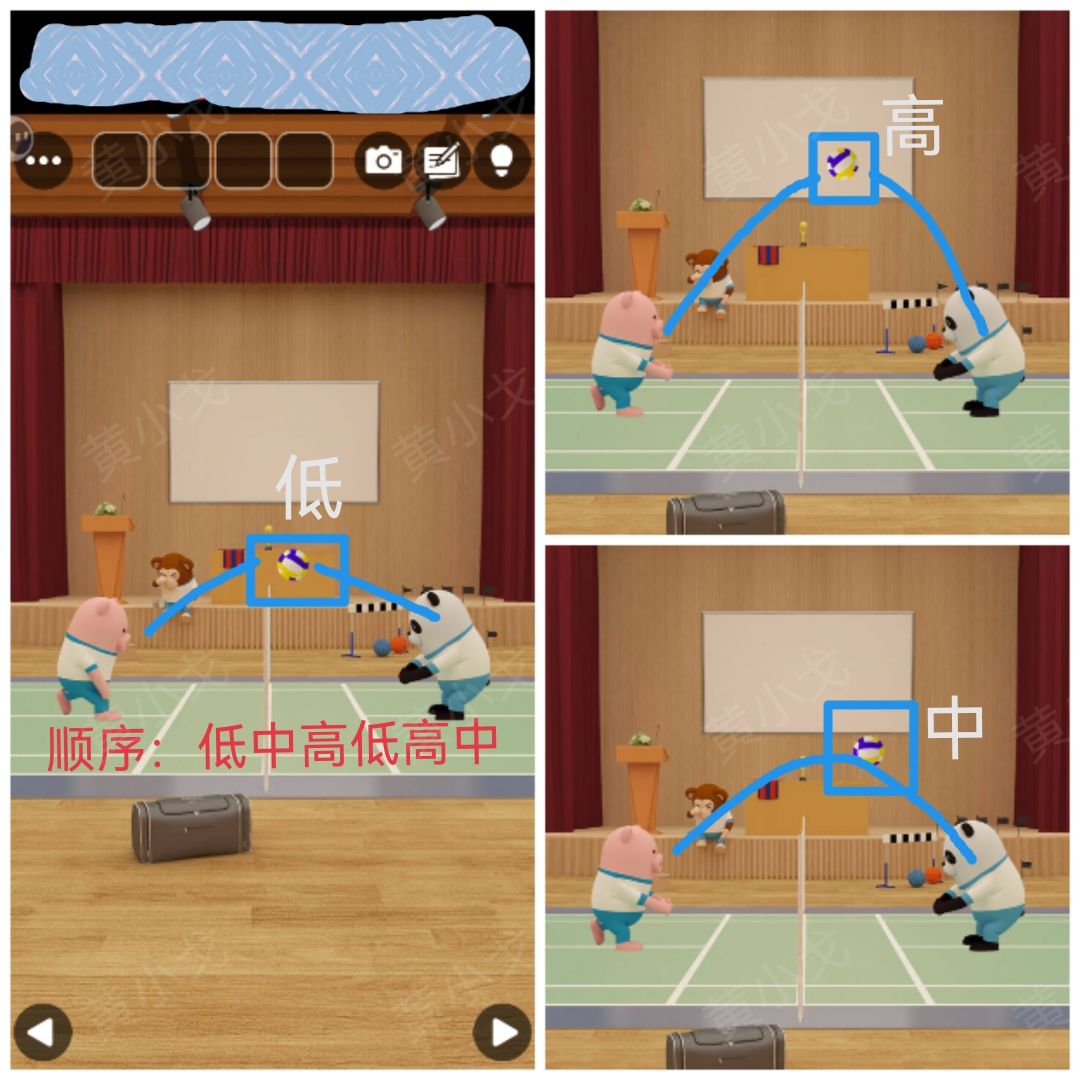 32.观察两只动物击打排球的高度顺序:低中高低高中