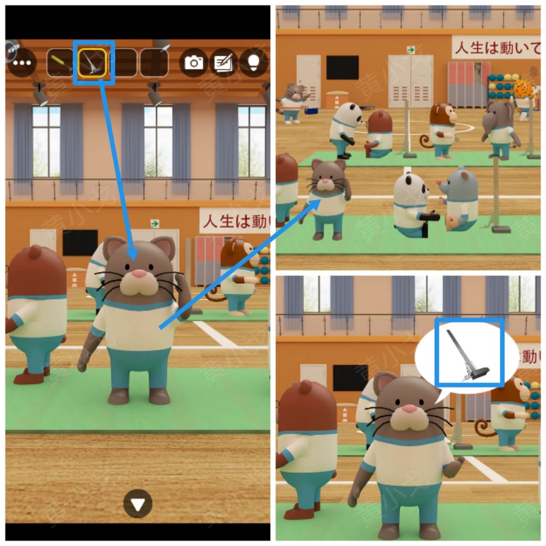14.点击斑马教练,得知它需要哨子;拿【哨子】给它,观察动物跳操的动作