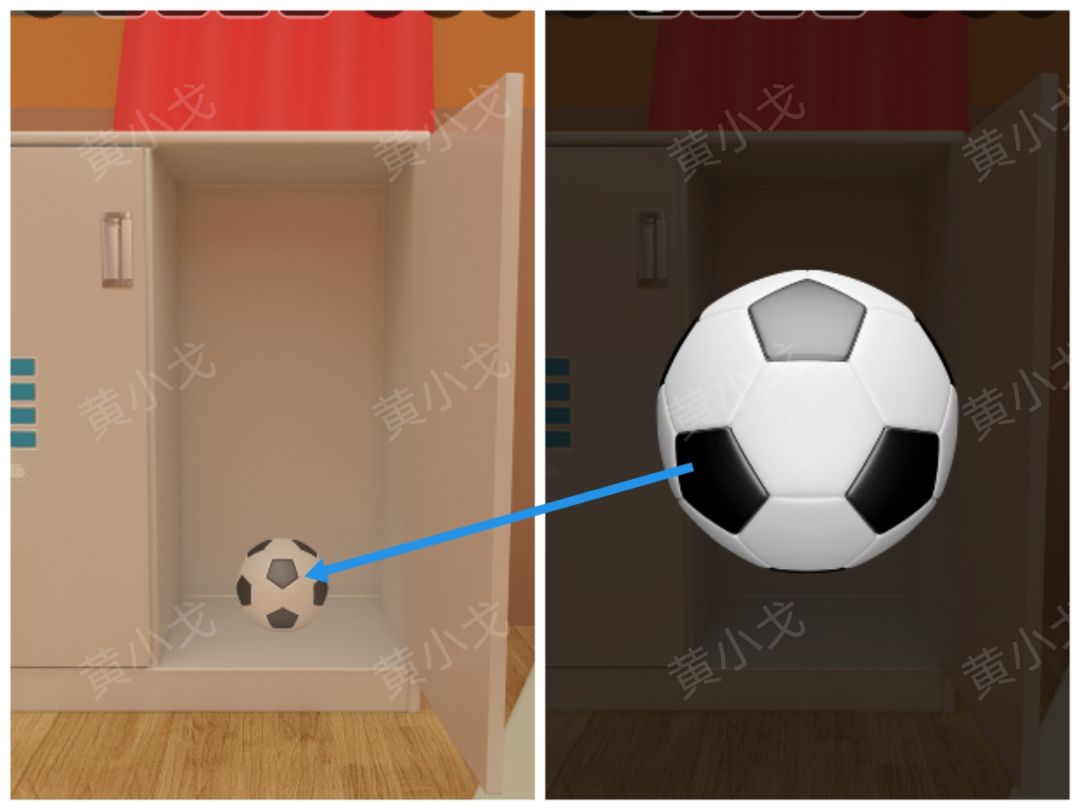 3.点击地上的箱子,根据[足球场]看台区观众的位置线索,调整密码锁