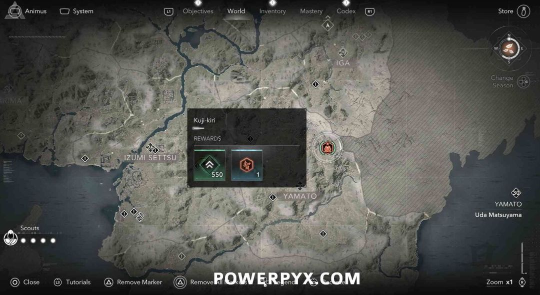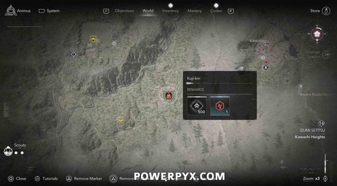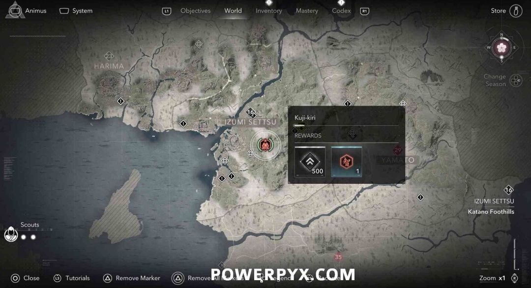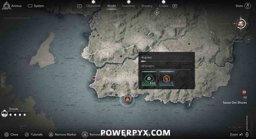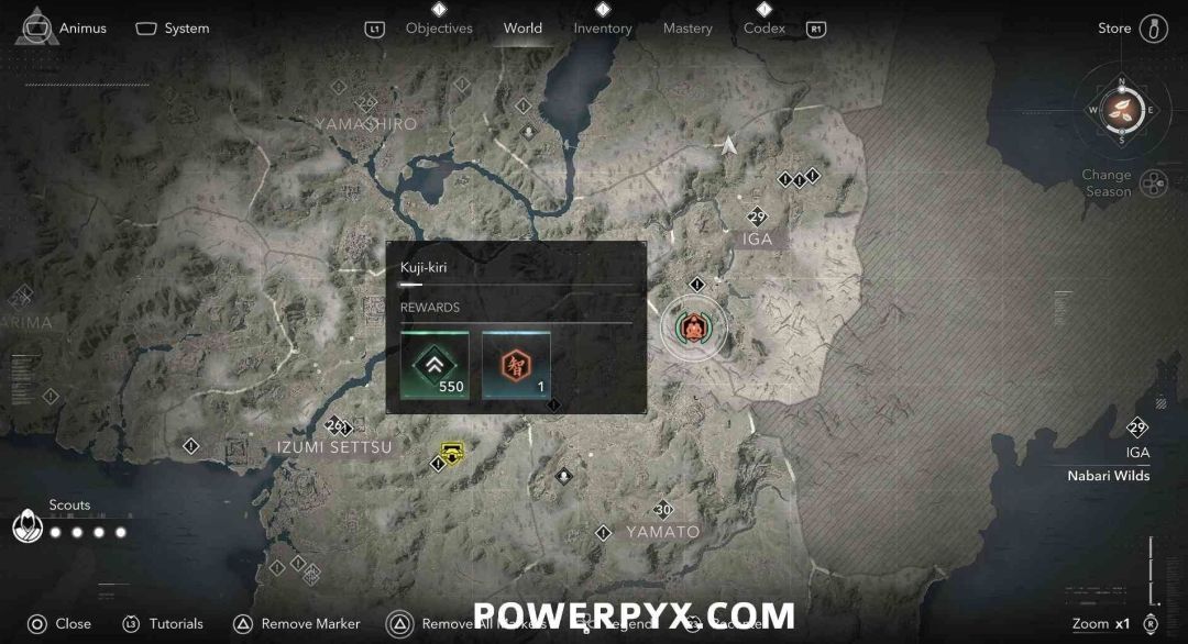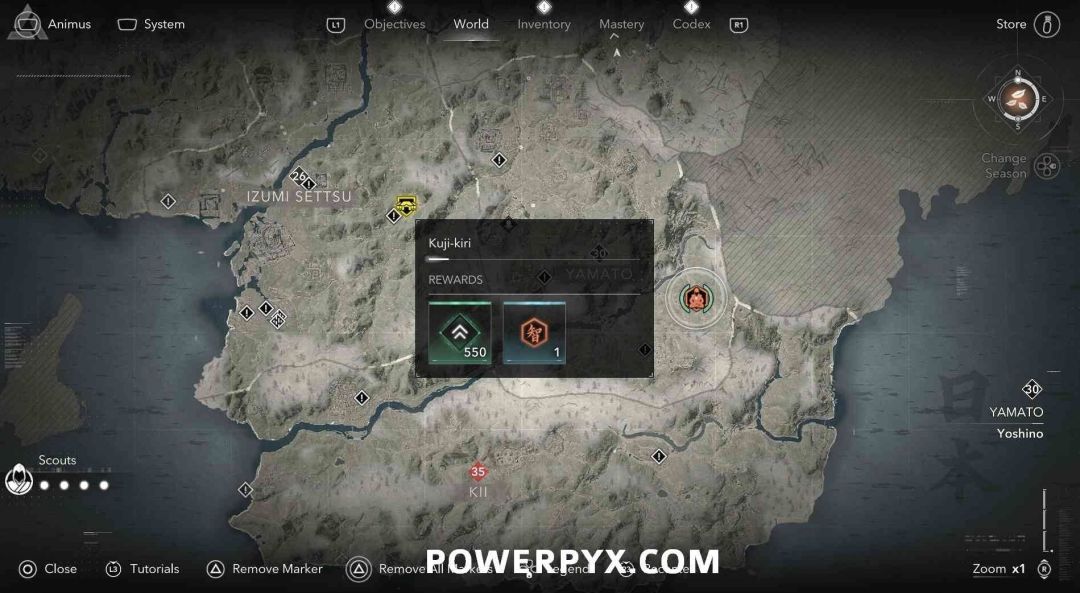 九字真言是奈绪江的专属收集要素,无法在扮演弥助时收集。九字真言在地图上会以白色问号标记显示,靠近时就会变成橙色的九字真言图标,是一种按键QTE小游戏,需要正确按下对应按键并进行冥想才能完成收集,可获得知识点和经验值。注意其中有一个九字真言会有一个40级的小怪偷袭。如果是以弥助的身份前往的话,可以在物品栏按住【□键/X键】来切换成奈绪江再进行收集。
