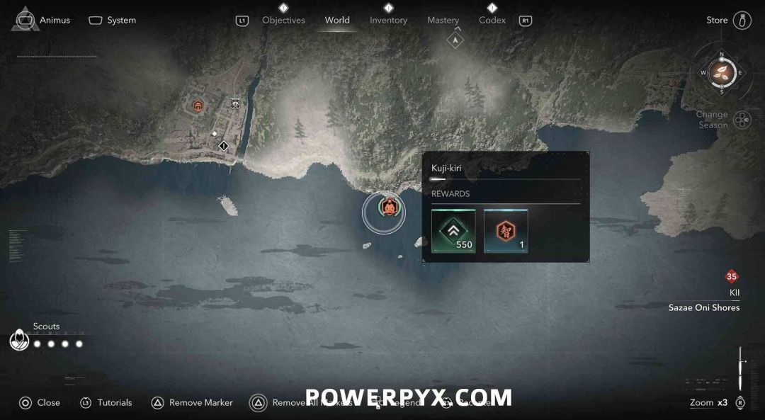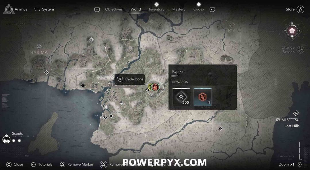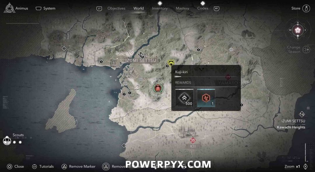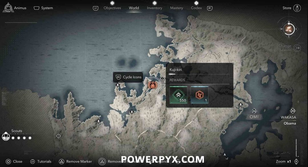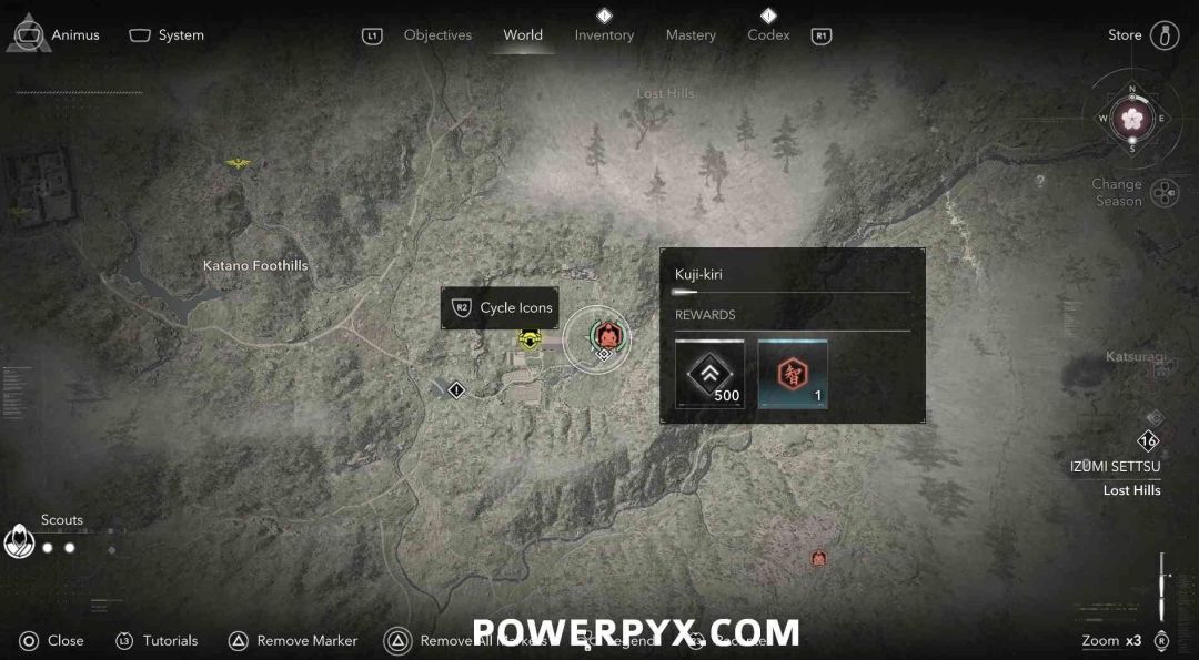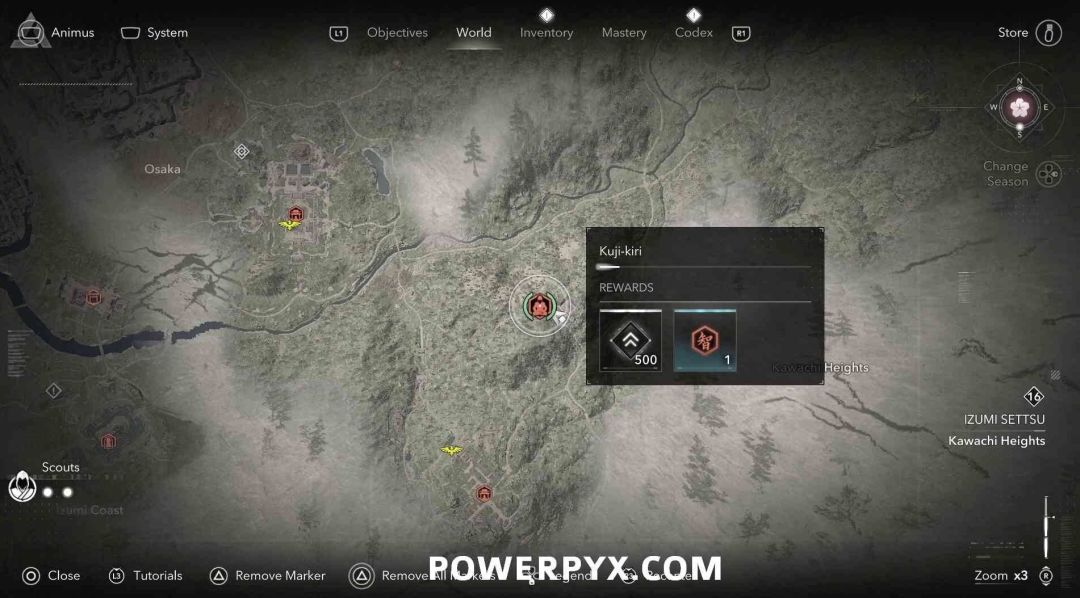 九字真言是奈绪江的专属收集要素,无法在扮演弥助时收集。九字真言在地图上会以白色问号标记显示,靠近时就会变成橙色的九字真言图标,是一种按键QTE小游戏,需要正确按下对应按键并进行冥想才能完成收集,可获得知识点和经验值。注意其中有一个九字真言会有一个40级的小怪偷袭。如果是以弥助的身份前往的话,可以在物品栏按住【□键/X键】来切换成奈绪江再进行收集。