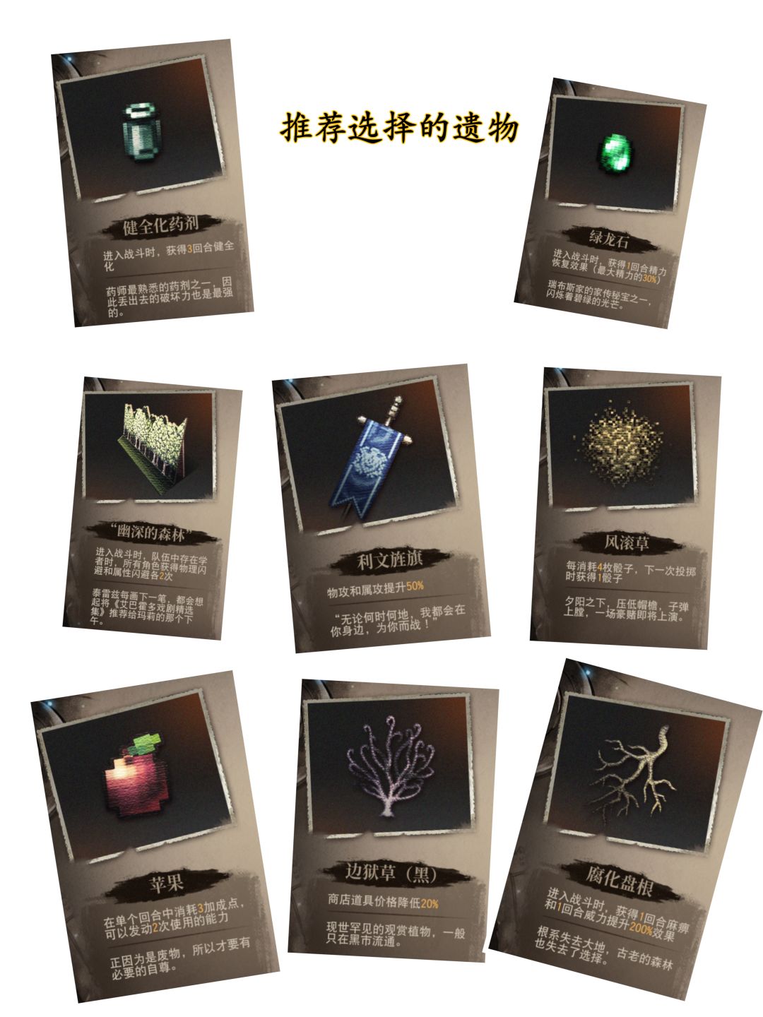 还有一个不要选的遗物:大圣堂模型,生命上限提升局内才能获得,导致开局永远不能满血,某些满血发动的技能不能第一时间发动