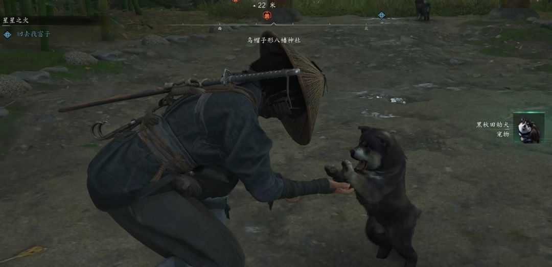 乌帽子形八幡神社有黑秋田幼犬。