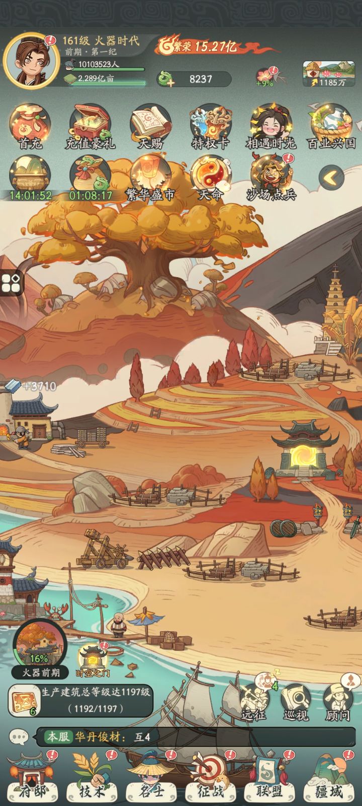平民玩家提个建议, 策划能不能在火器加个技术研 究, 效果是让每项广告奖励不变,只需要看一次广 告。 让我们后期也有玩下去的动力,不然后期玩法又多,广告又多玩的也越来越疲惫了, 盟友好多都退游了