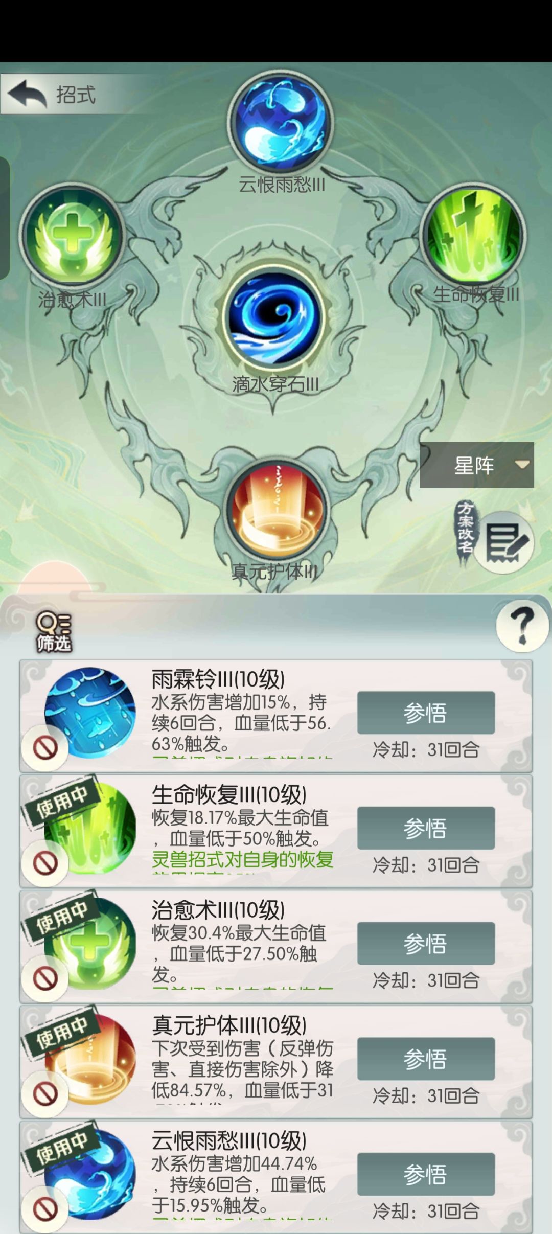 鉴于普通乌龟阵第五回合招式伤害巨高,能打100亿,加上其他攻击根本抗不住,拉减伤才是正道,带的鬼圣减伤,剑带方圆保五回合√命,鬼圣削弱下11回合和17回合体魄招式完全能抗住,11回合也能卡10%血量,剑天赋剑右四回合清招式,运气好清掉体魄招式,兽后发10%主五提高五鬼闪避和其他招式伤害