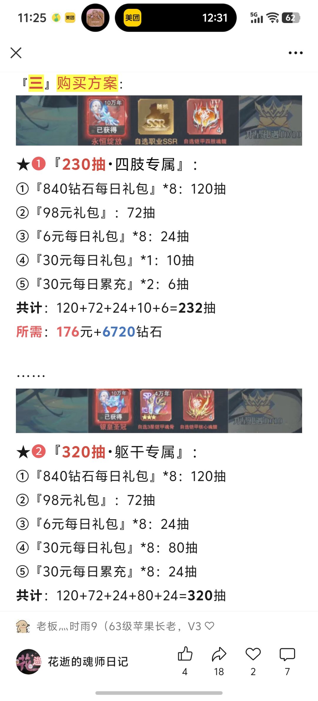 ★❶『230抽•四肢专属』:176元+6720钻石