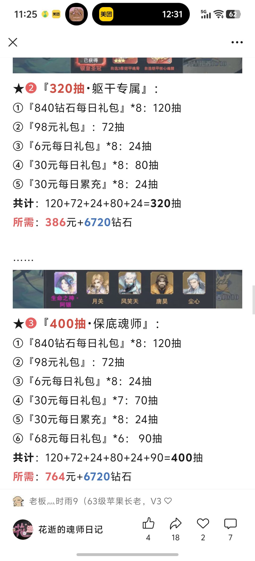★❸『400抽•保底魂师』:764元+6720钻石