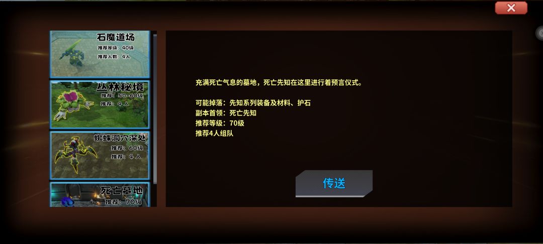 组队副本:有40/50/60/70级共4个副本
