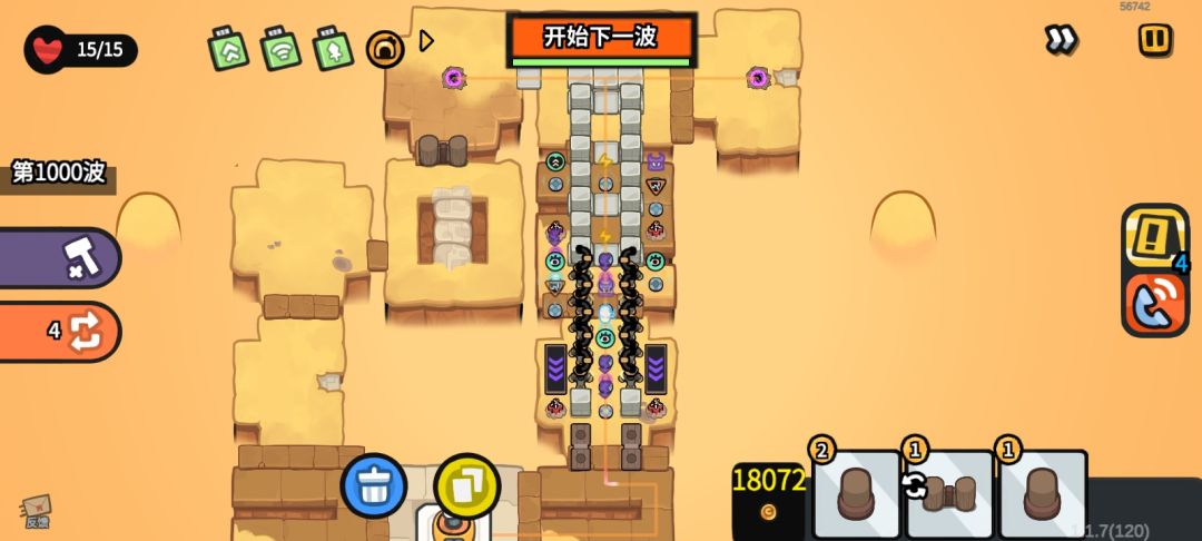 2.每五关会给塔/秘宝之类的,暂停-重试可刷新卡牌,在21波开始前刷出至少一张火塔,最好两张