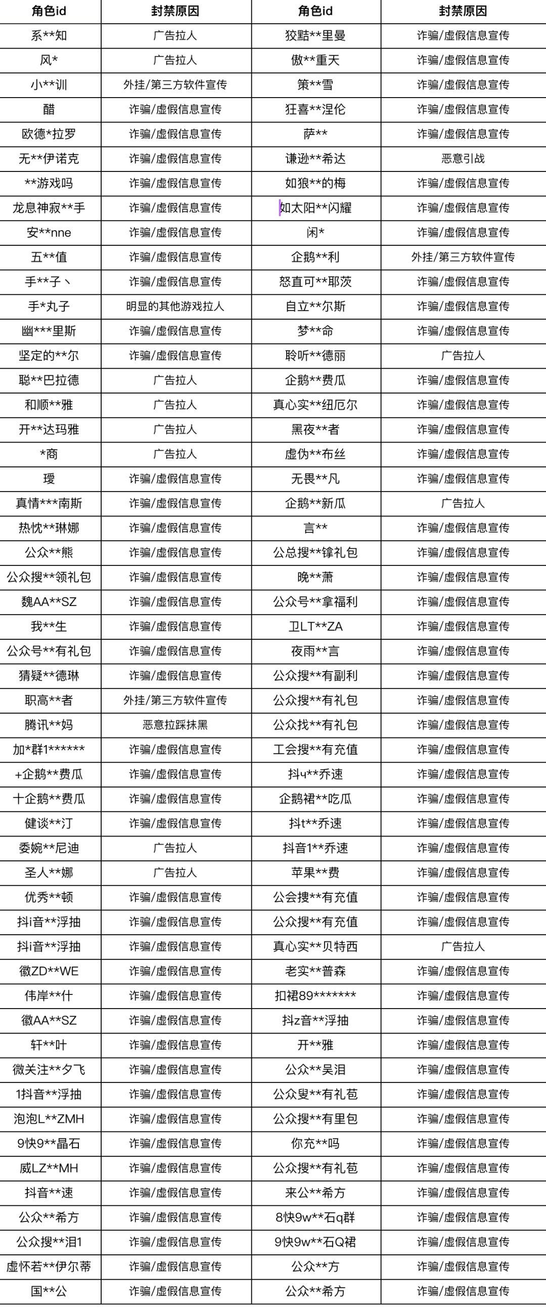 从开服至今,我们已经通过技术手段已经侦破多项舞弊行为,对其逐一核查后进行了对应的封号处理。涉及非恶意破坏游戏公平、安全环境的账号,截至目前总计处理1545个。