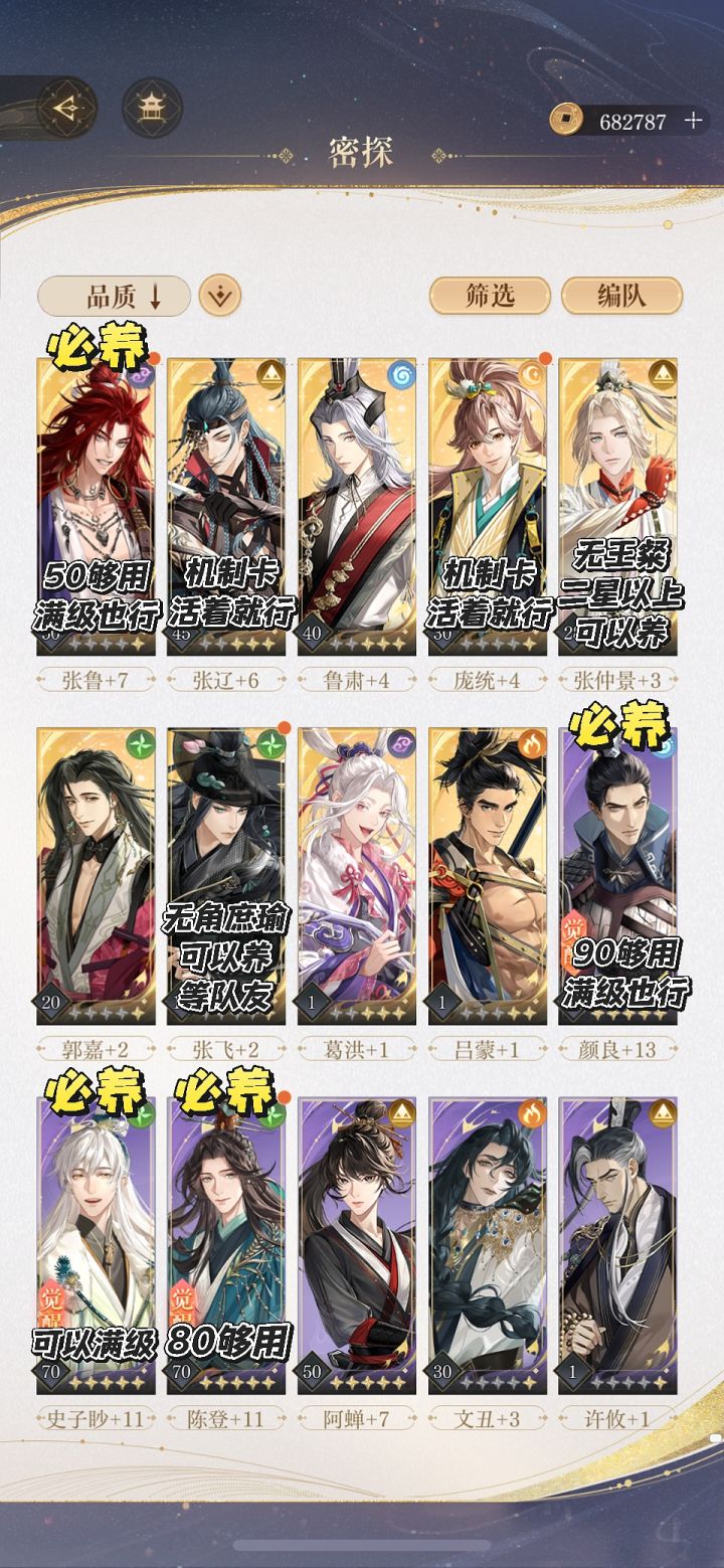 【张鲁】50够用,但是资源多升级到90甚至100也没问题,能用上,他伤害还挺高的