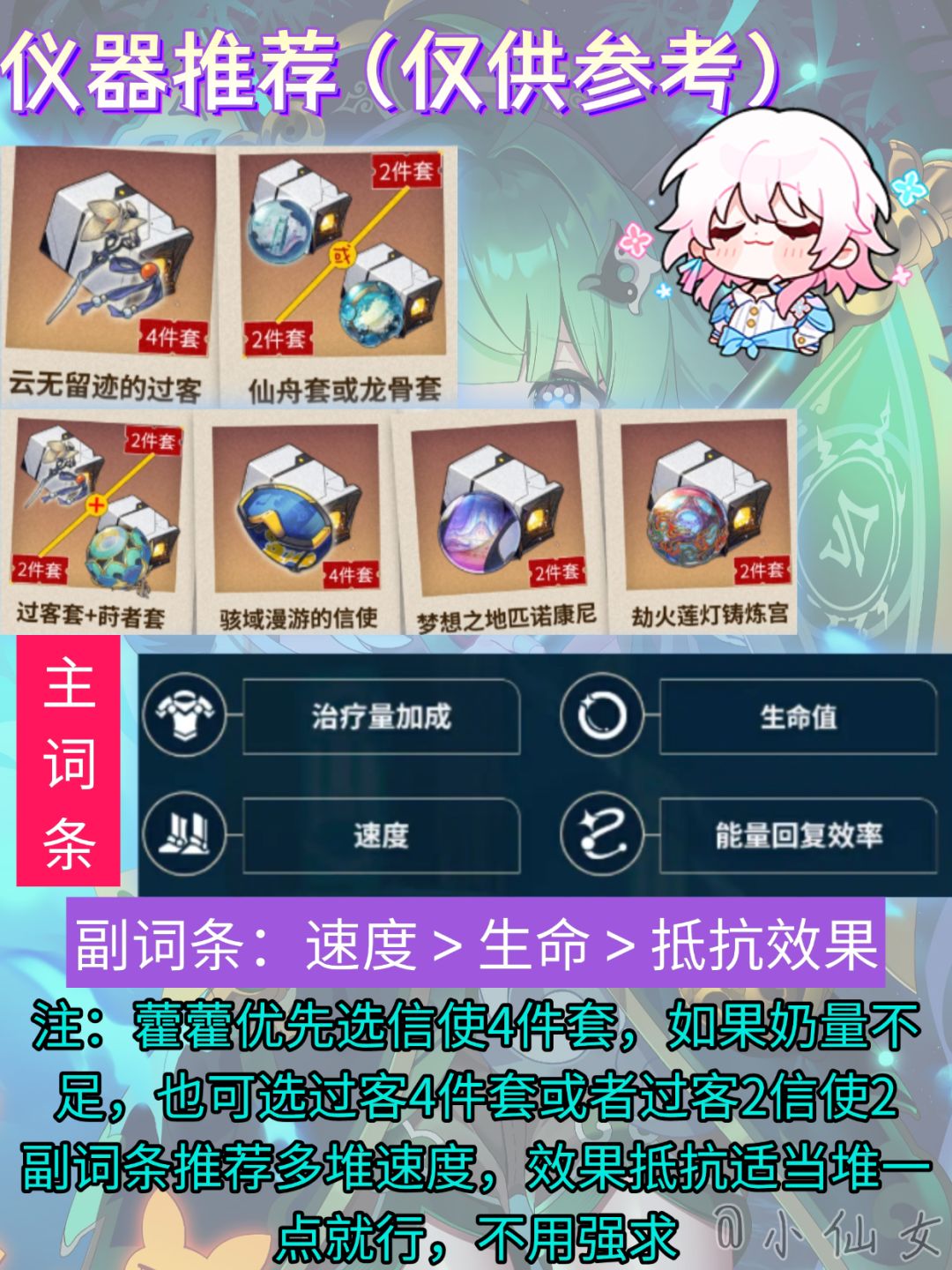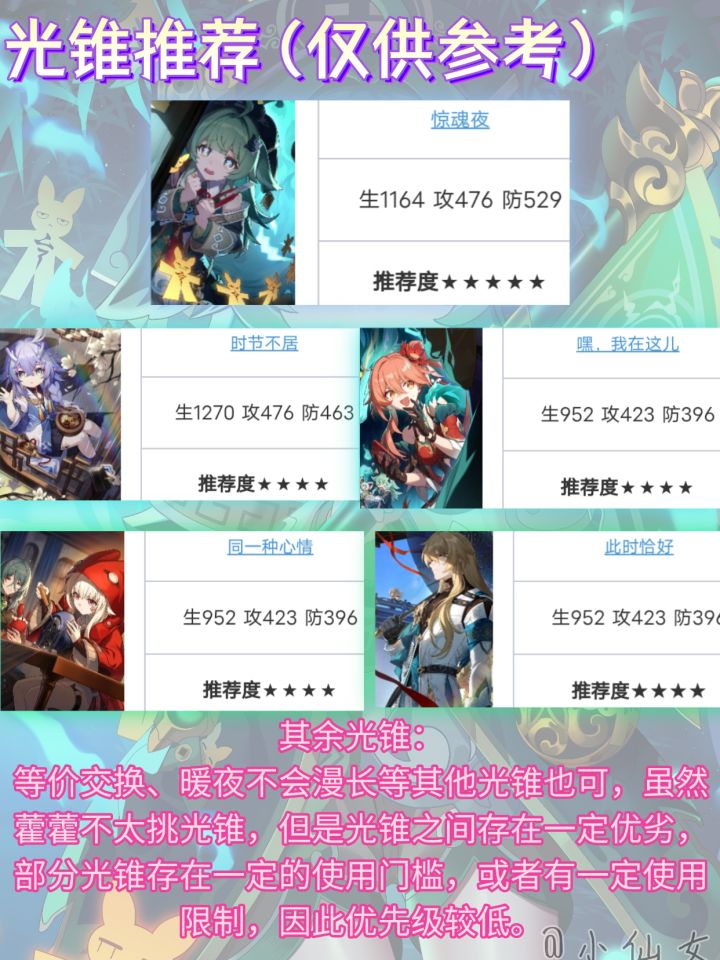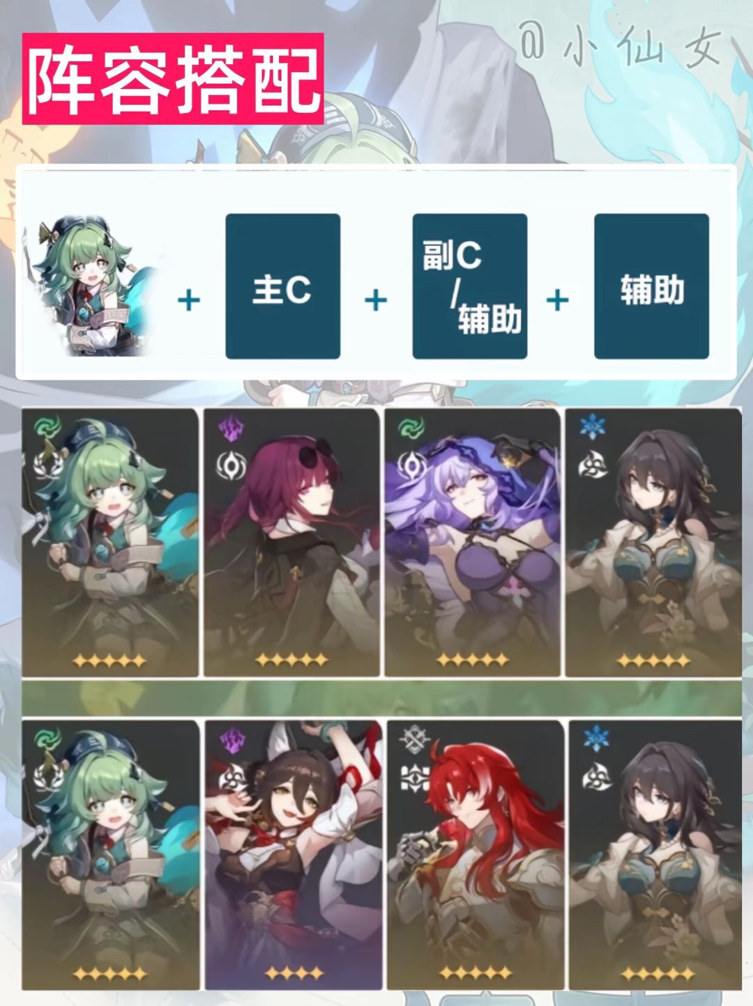 虽然近几个版本的热门角色黄泉、流萤均与藿藿相性不佳,但只要第二位可以群体回能的生存位没有上线,藿藿的战术价值就不会贬值。