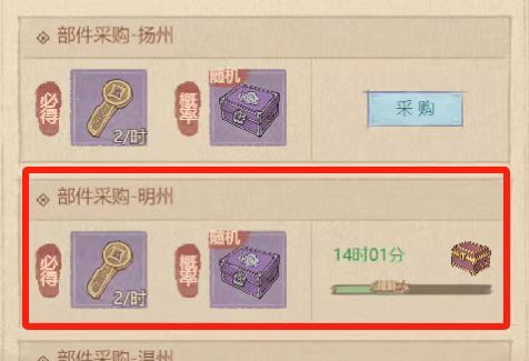 逐个部件升级:每天主要采购1种部件,都升到紫色品质后再换其他部件,全紫色之后再回头采购一种部件,升到橙色品质,依次类推。这样可以逐步提升行商效率,避免资源浪费。(想迅速合成橙色配件,就要寻一个部件,集中力量合成)