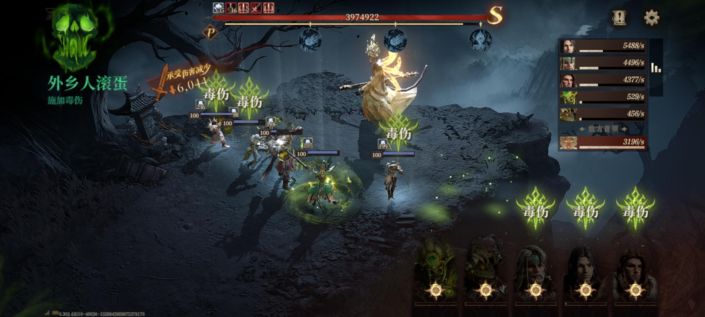 毒伤是按百分比扣血,最多5秒能扣15%。所以选单体加毒伤2-3层的角色放上去