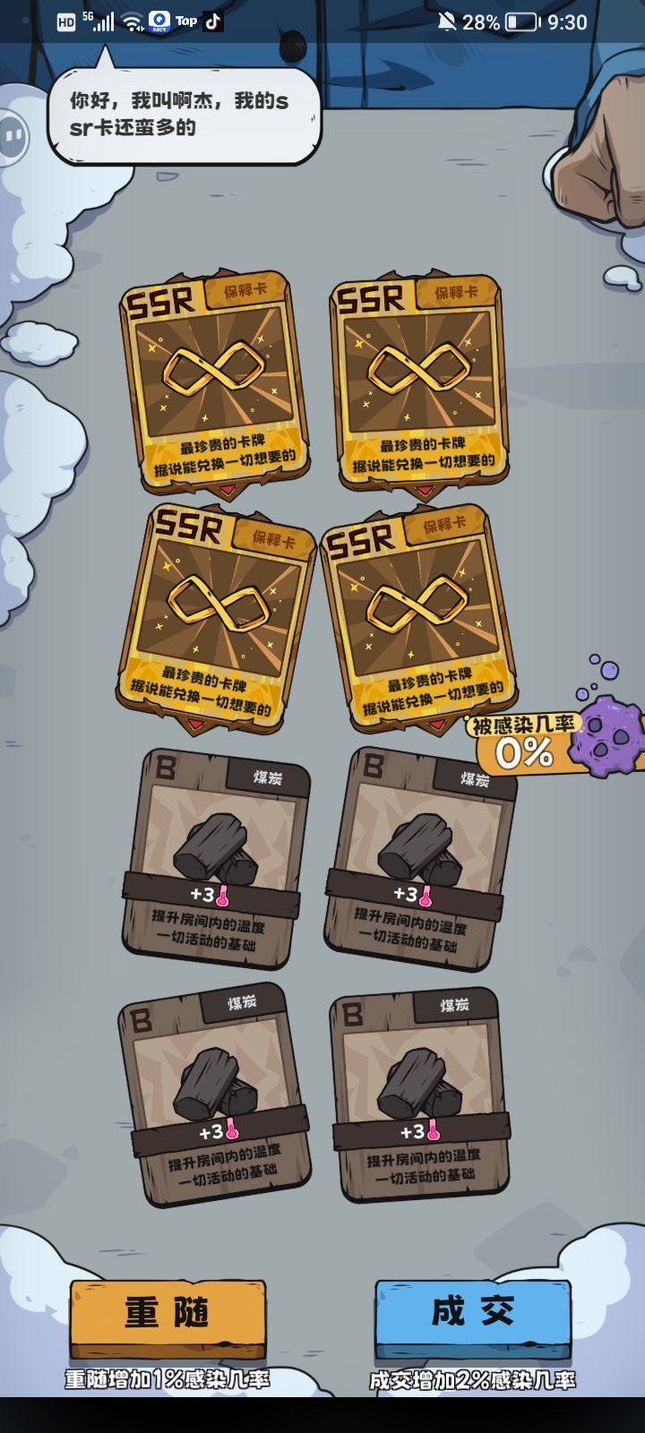 ,拿一盒孢头和两支镇定剂作为兜底,用四个煤炭或者树枝去自由交易市场,没遇到杰哥就重随,刷到杰哥就成交,孢头作为预防还没刷到杰哥就感染的情况,两只镇定剂也用来补充杰哥所损耗的san值,这样就可以快速获得保释卡了