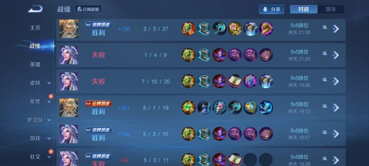 职业辅助。前四张图都是昨天战绩,王者二十星的局。后四张是比较早的了,从黄金到钻石都有。辅助当主C的寂寞谁能懂。永远都是最低的经济,最高的贡献。