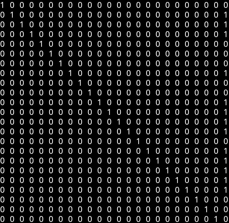 总结:计算不难,毕竟就是0变1、1变0;难的是把矩阵列出来,而且数字太多,错一个就凉凉