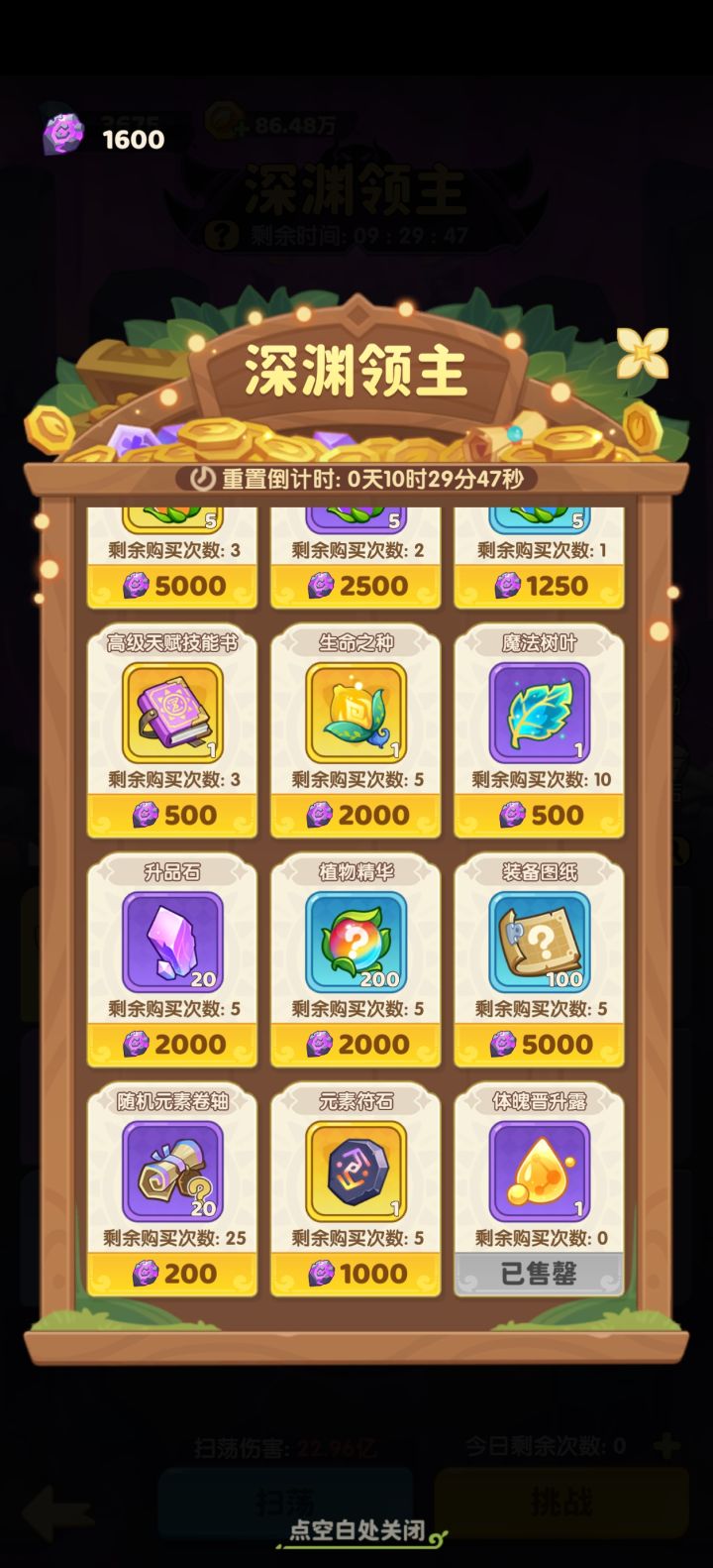 深渊挑战 体魄晋升露!!深渊商店一周买20,不要攒割草机,垃圾中的垃圾,每周必买20个,中后期非常缺,所以就买体魄晋升露 技能书