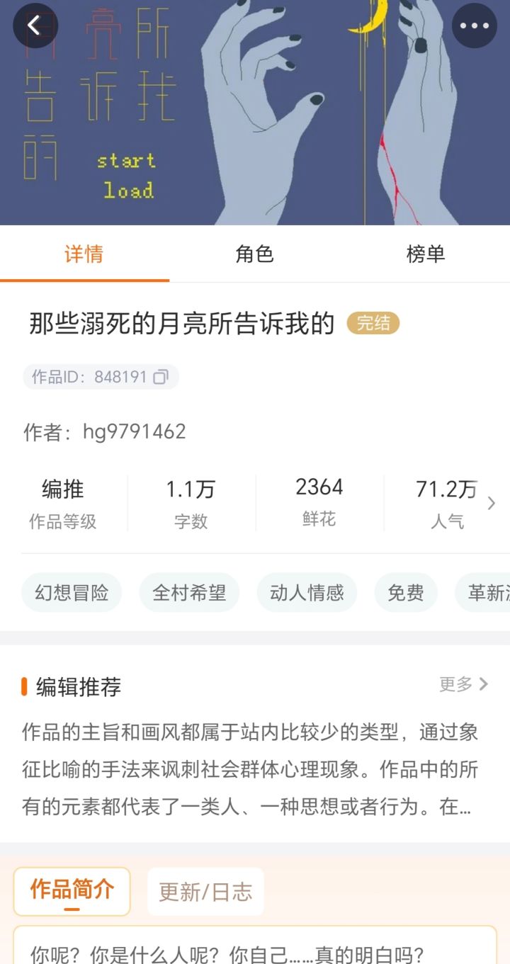 前来推荐一部短篇,《那些溺死的月亮所告诉我的》。