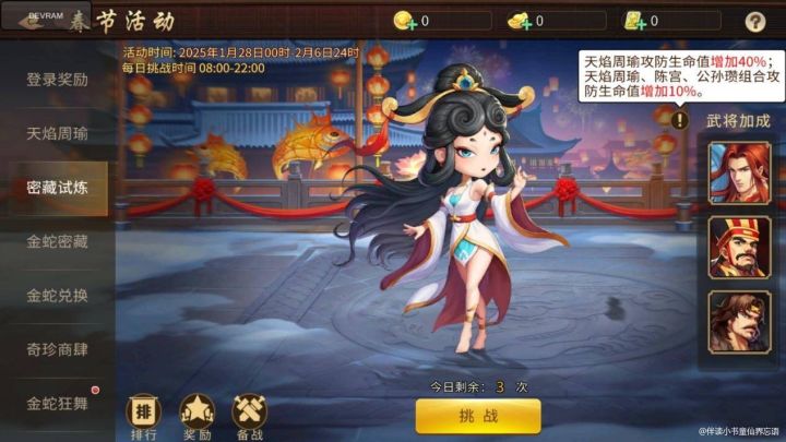 我想赛季专属强力武将是大家最近两天关注焦点之一。在新赛季,希望这些武将不仅拥有强大的技能数值,技能机制也能更具创新性。例如,可设计出能改变战场环境的武将技能,技能命中能制造各种让敌方武将受限的buff,参照刘备的几大BUFF机制。或者参照街机三国战纪2里面的技能一样,能够召唤特殊环境类型的技能具象化的障碍阻碍对手行动。与此同时同时,我建议赛季武将获取方式可以多样化,除了常规的招募,还能通过赛季专属活动、军团贡献兑换等途径获得,降低获取难度的同时,也增强玩家参与活动的积极性。这样一来,大家都有机会体验到赛季专属强力武将的魅力!保有游戏的热情和畅玩的激情!
