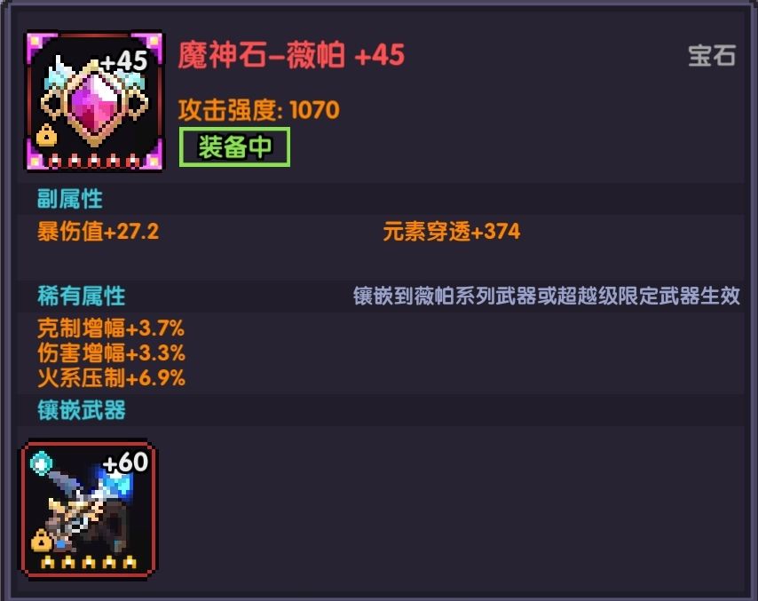 稀有属性:火压>伤增>克制≈技能等级(技能满级前)>其他