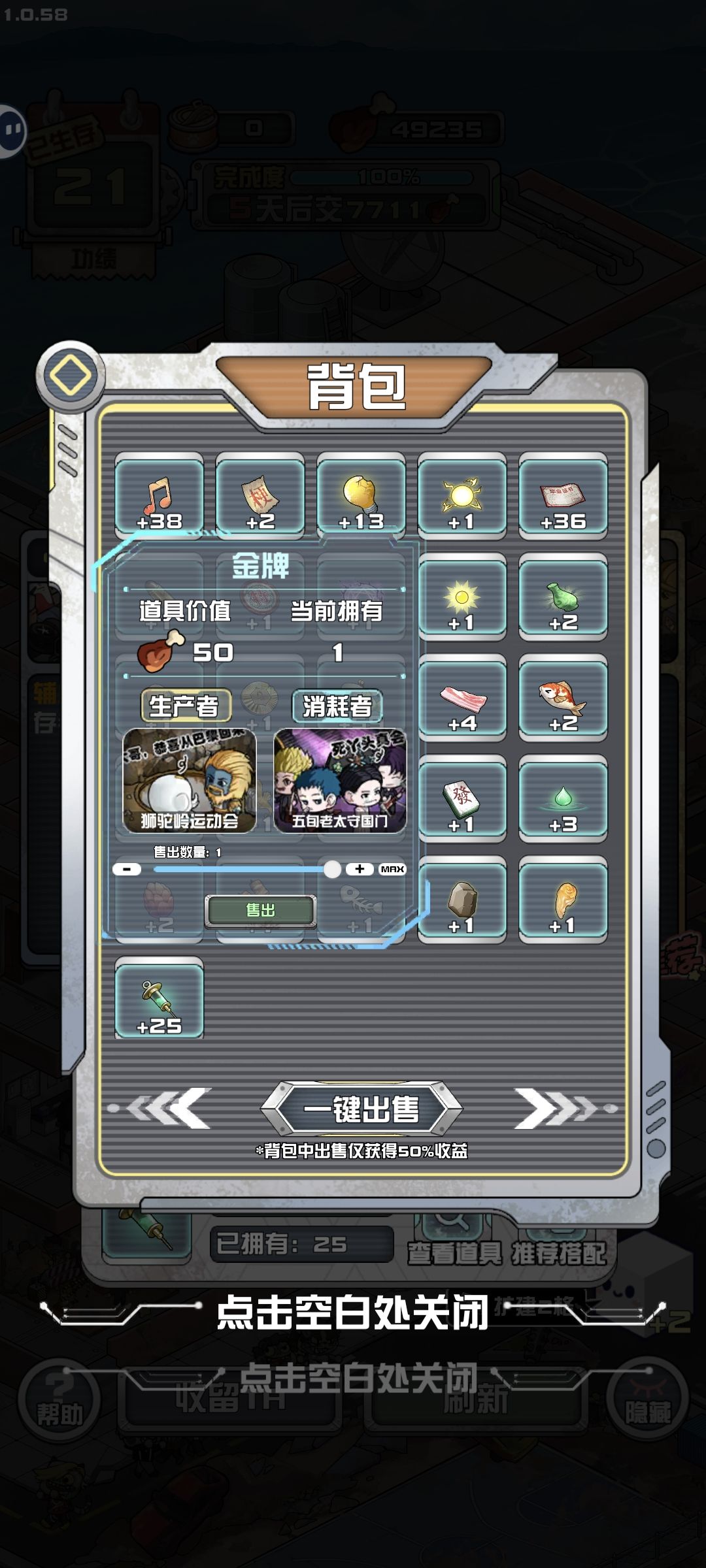 通过物种混合师会生产没人使用的道具,即可发现这些未使用道具和幸存者