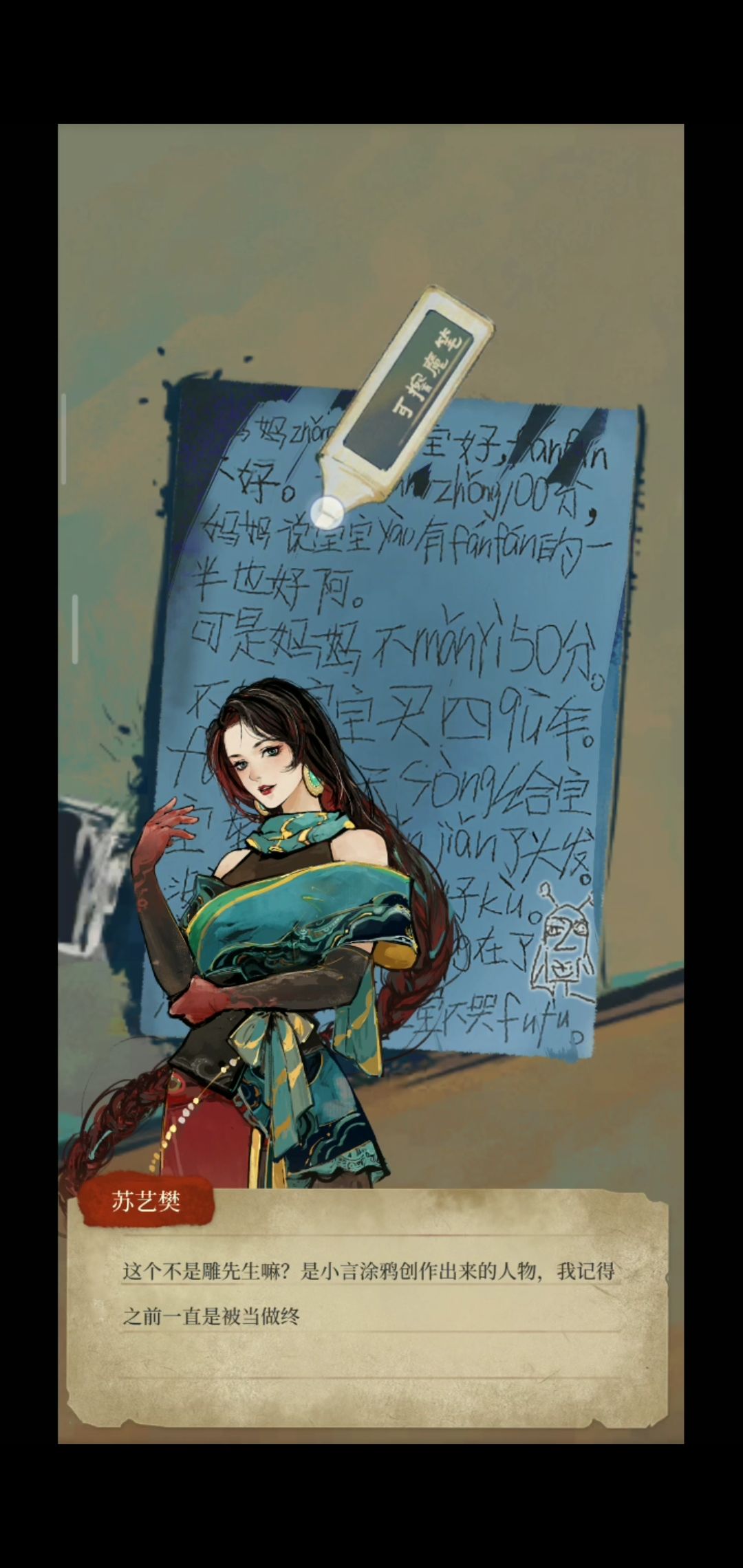 ⑦点击⑦后,点击下方50分的试卷,翻转到背面钢笔水印记,放到⑦上,拿擦除魔笔擦出“雕先生”