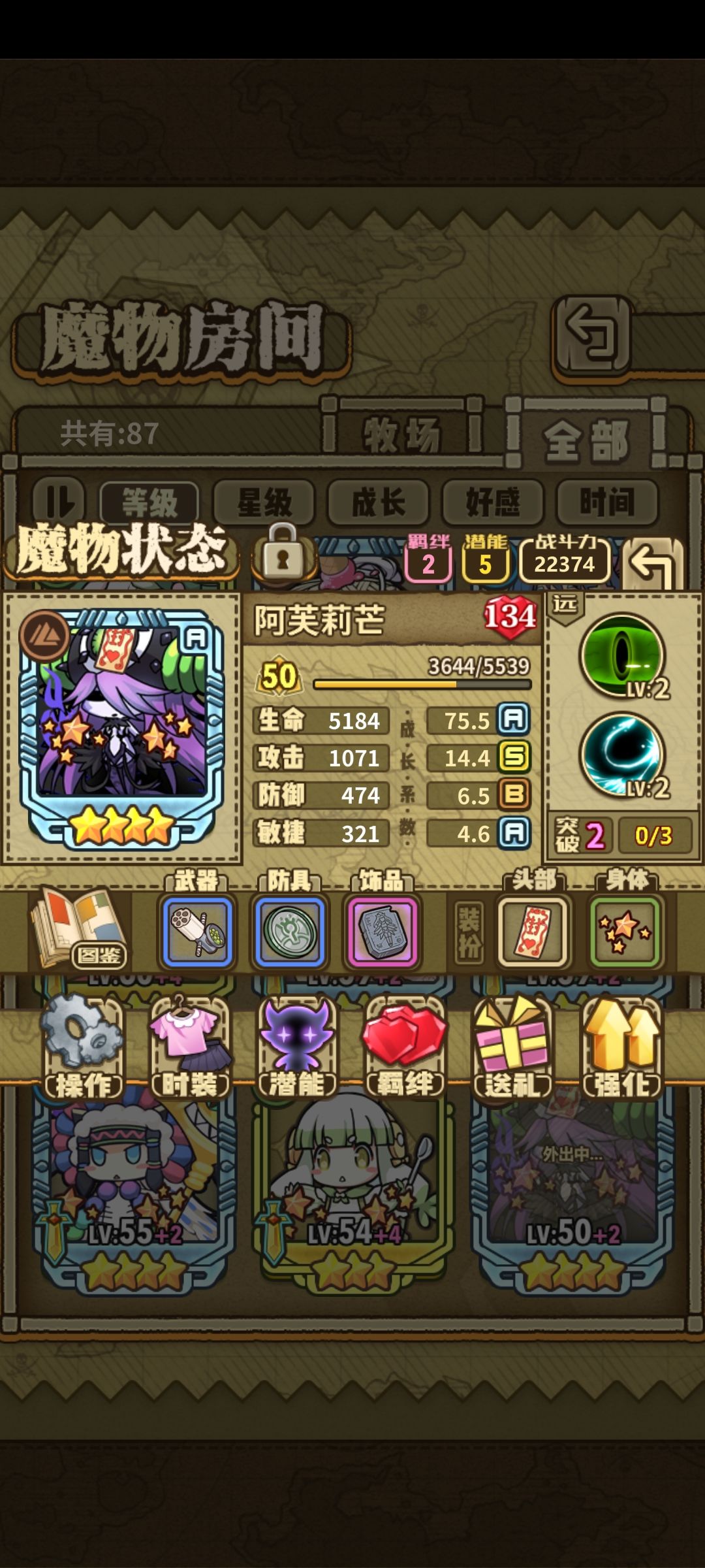 首先是花藕子,我们通关全程的绝对主力,升星前大招只能单点一个人,但是攻速达标容易,突破获取也不难,升星后输出能力更上一层楼,当之无愧的金币战神,多次挽狂澜于既倒。缺点就是远古三星魔物,面板确实低了,虽然升星抬了一波,但是后期仍然避免不了刮痧(后期怪数值高,低星面板又没有加攻buff,确实打不动),不过在我们金币队伍里还是毫无疑问的MVP!