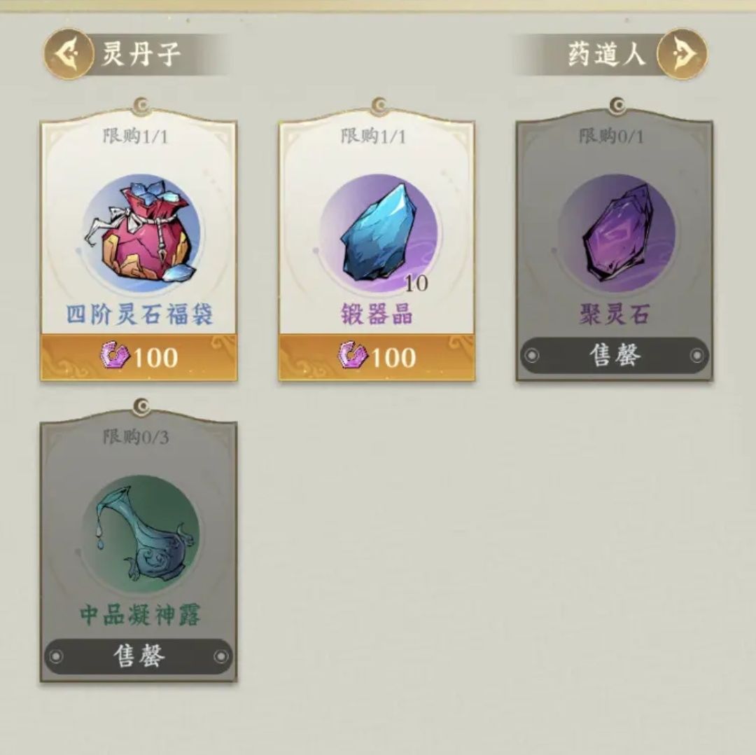 ✓ 聚灵石 ✓ 凝神露