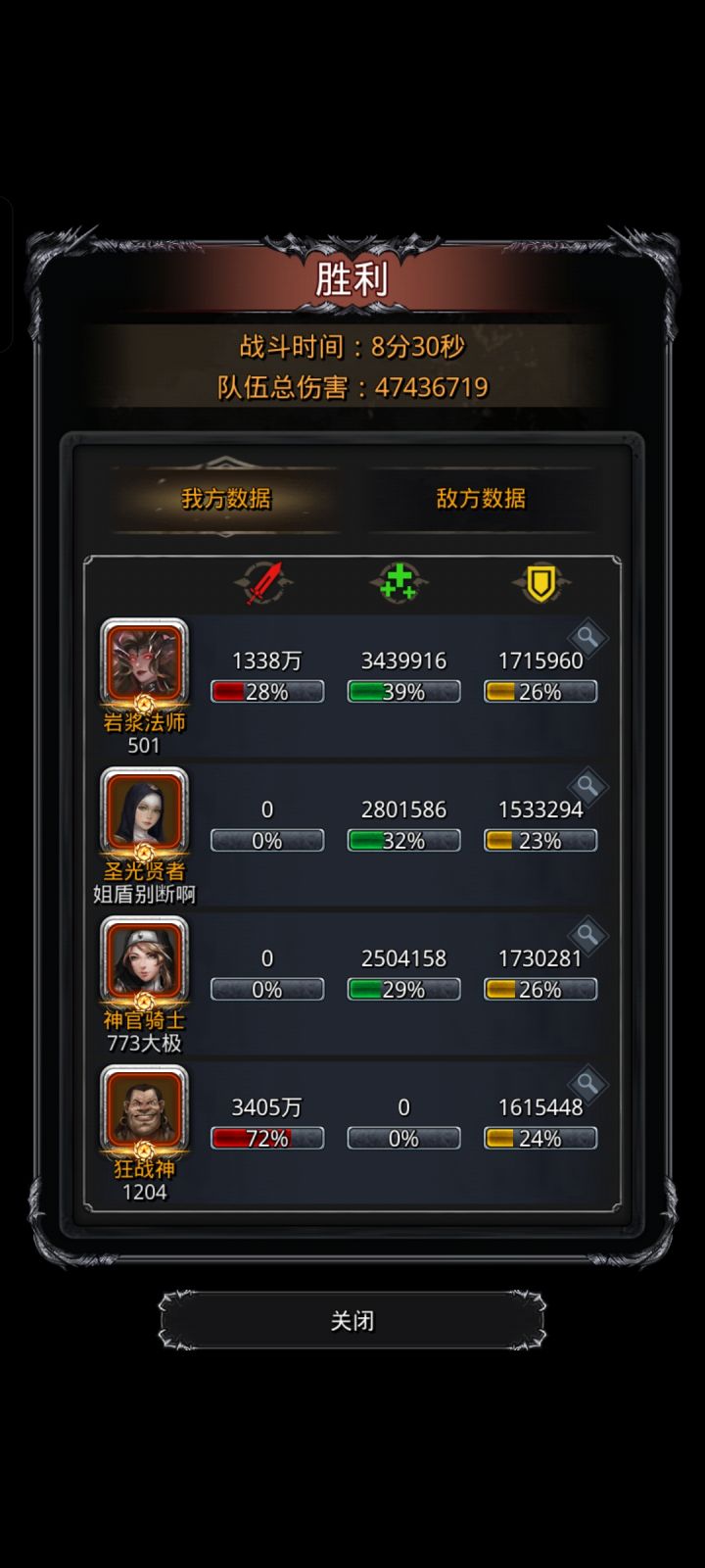 。祭司始终奶;神官45自己80队友,手动补嘲讽!不能断!蛮子开单攻最低;火法打最低40双奶,觉得不稳50双奶,打死双手后可以调到60,或者手动攻击补奶(不要忘了神官补嘲讽)。 战斗操作:蛮子火法手动把右手打至最低血后自动,右手是45秒吃人,所以火法可以手动攻击尽可能少奶,注意补神官嘲讽;打死右手后,蛮子火法手动打左手至最低血,然后自动,手动补神官嘲讽,火法可以多奶,蛮子输出够够的,只要不空。源兽我直接按最低血顺序打的,源兽没死完要手动补嘲讽,火法自动手动随意,可以多奶。最后只剩本体随便打了