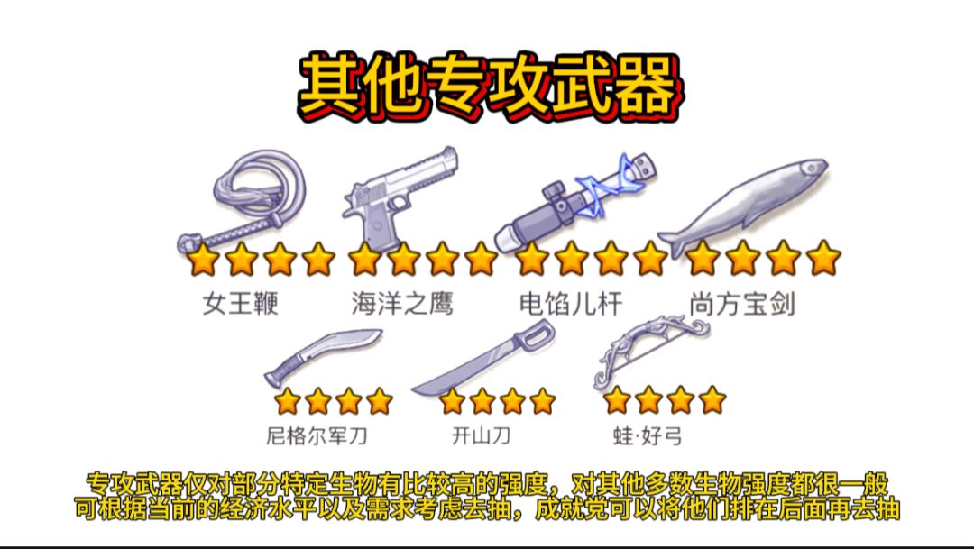 跟豪猪研究一晚上弄出来的图,后面武器数值有所变动会实时更新排行图,强度排行以及兑换抽取攻略仅为个人观点,实际以自身情况为准