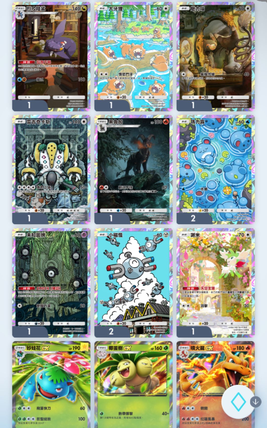 8.新手上来抽钢或者小火龙吧。创世神的卡包,我感觉都是白卡居多,概率好低,不知道是不是我个人原因。水系的神兽,还要抽皮卡丘那套卡包摸到两张“小霞”,想要快速有点体验,钢、小火龙、雪拉比都还可以的。 #宝可梦tcg口袋版