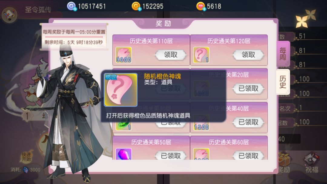 圣令孤传是大理寺的“无尽模式”,具体玩法和圣灵探秘类似,但是有着最高200层的超长挑战过程。而与超高的层数相匹配的就是--丰厚的首通和每周奖励!