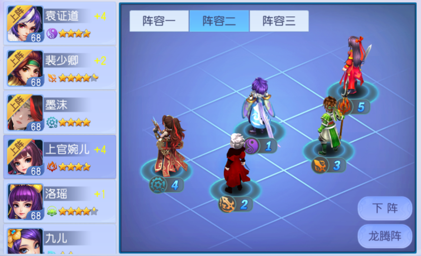 不要考虑任何生存和辅助,全部上阵输出伙伴,阵型为增加全体伤害的龙腾阵,目的是在第一回合打出最大的输出。