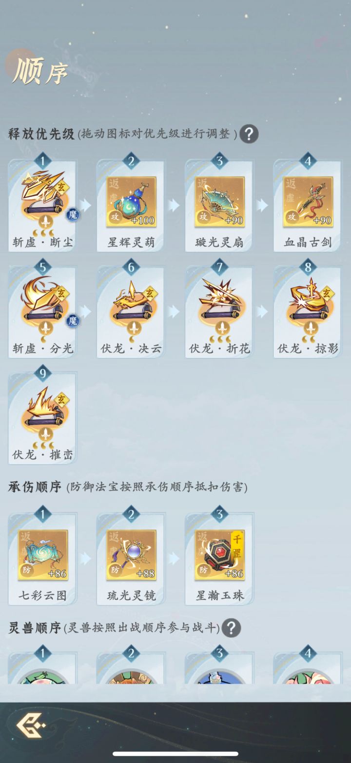 图片有两套顺序,出伤伤害自测,看自身练度安排,以上都需要搭配秘术分神才能有良好体验。