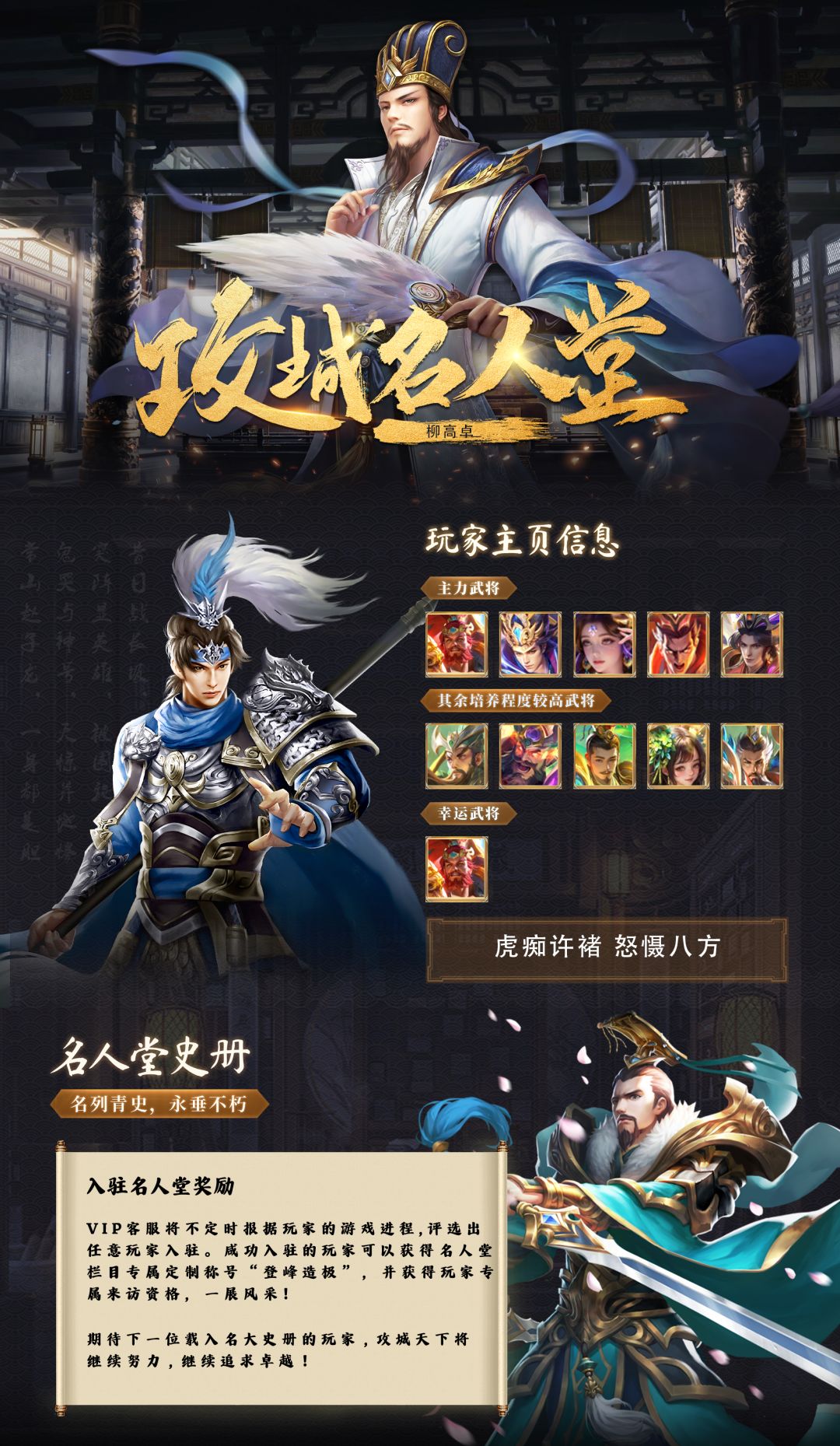 第21期被《攻城名人堂》加冕的玩家“柳高卓”登场,志行高卓,何惧狂澜!下面就让我们进入“柳高卓”大神的名人堂专场吧!!!