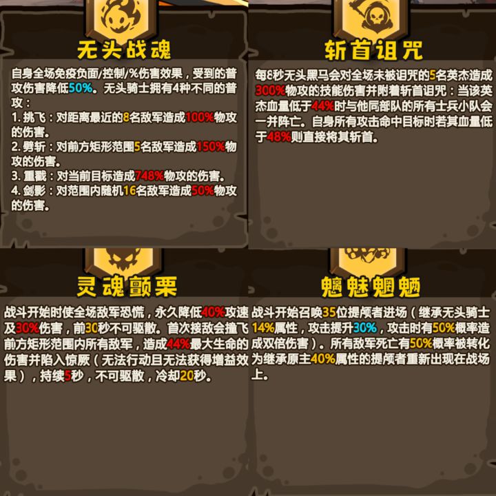 4 Boss虽然召唤小兵,但是大多数都是无头骑士一个单位(所以aoe 范围多的高的较难发挥,需要单体伤害高的)