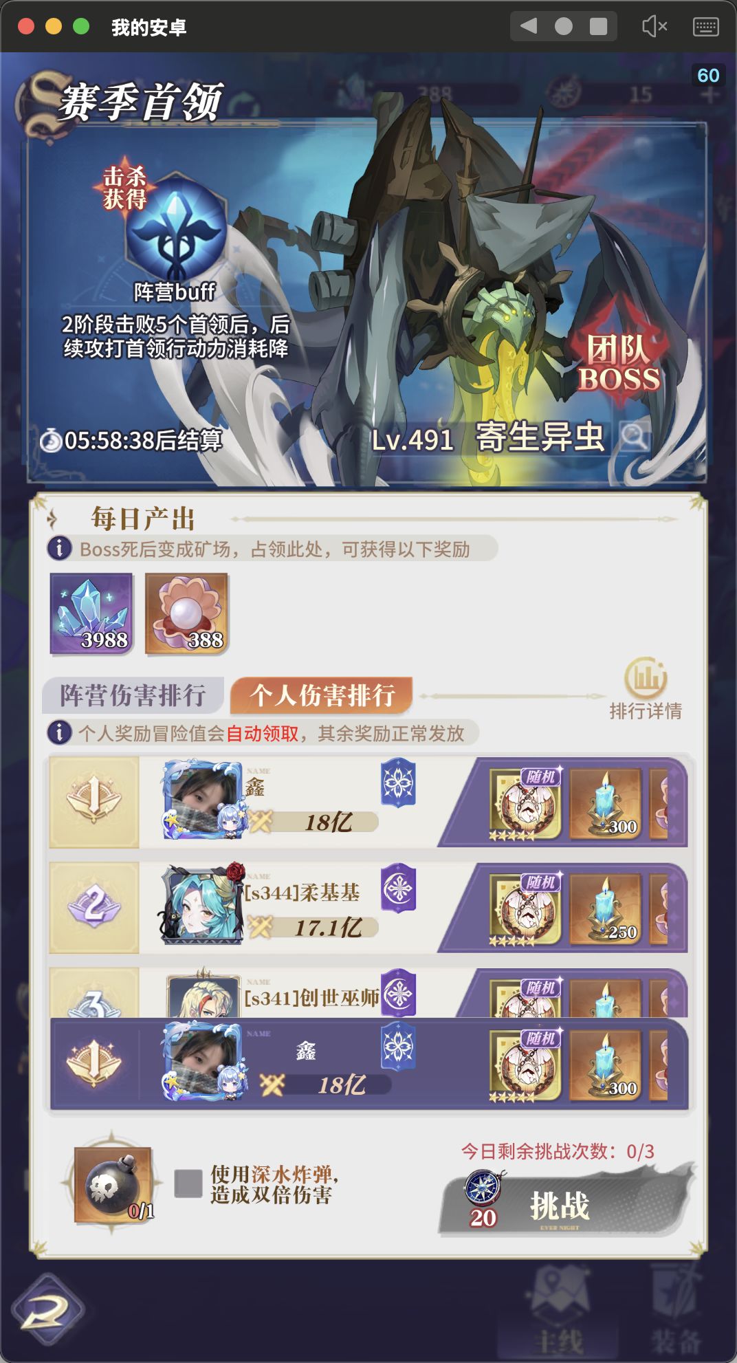第一天总结:基本上冒险榜前三,产出榜第一