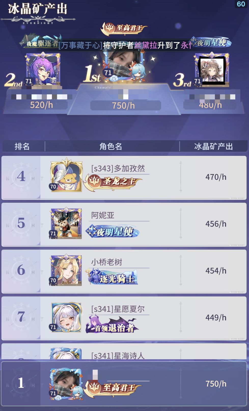 第二天至中午未拿傍晚的体力时,产出榜还是第一
