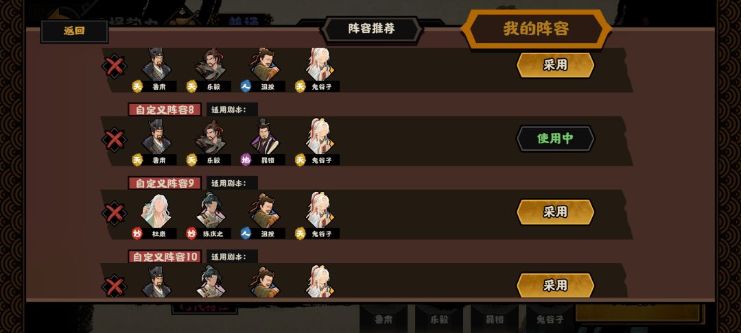 鬼谷子强大的家仆效果,外加专武提供的15格挡,跟百分之百的劝降。有很大的逆战损能力。
