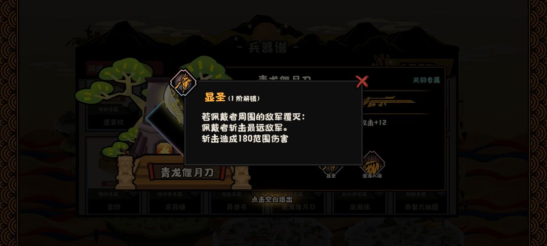 这把专武不用多说,很实用的PVP,PVE双专武。核心在于显圣的效果,多刀效果。搭配一些名臣可以非常轮椅。