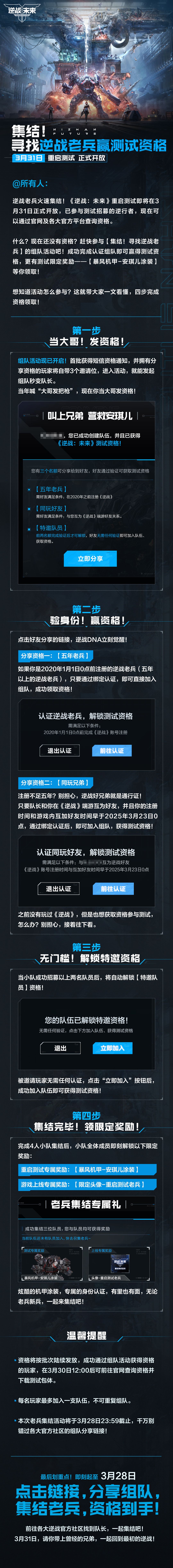 【已开奖】「重启测试」正式开放。参与老兵集结活动赢测试资格!
