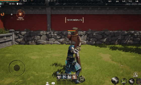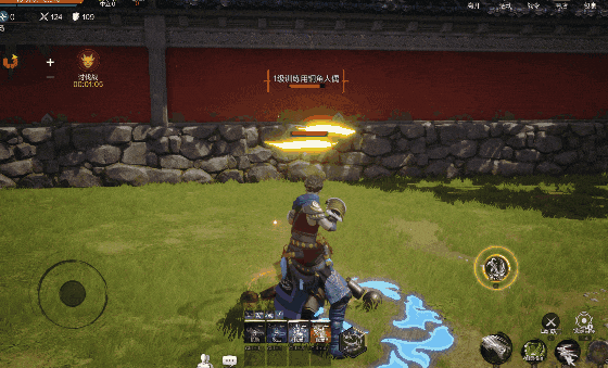 3.【扫堂腿一式】低扫触发琉璃破碎特效!接铁山靠时肩撞轰出山岳虚影,击退路径残留碎石浮空特效,被命中者周身缠绕锁链状禁锢光效。
