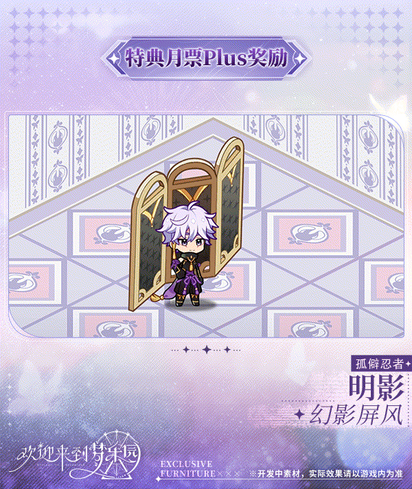 -核心奖励内容:解锁乐园月票进阶奖励、明影[孤僻忍者]心绪时光·稍作更换、明影[孤僻忍者]专属互动家具「幻影屏风」
