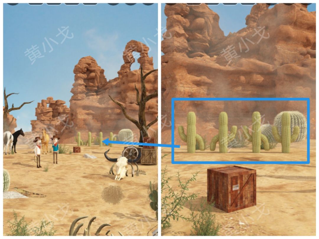 17.点击小推车上的右侧的大桶,根据[沙漠]场景仙人掌形状线索,调整密码锁
