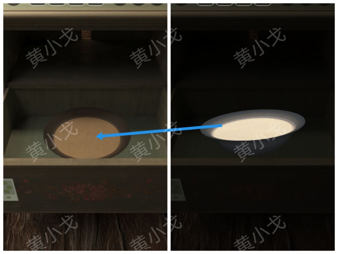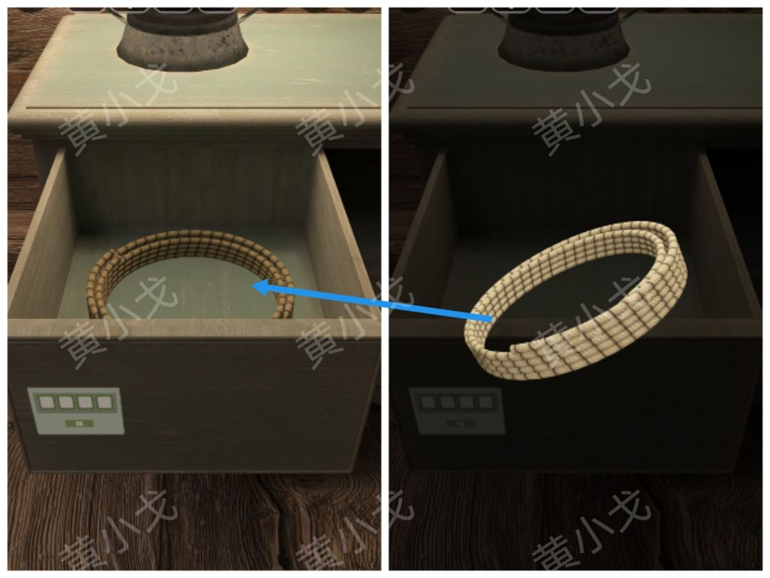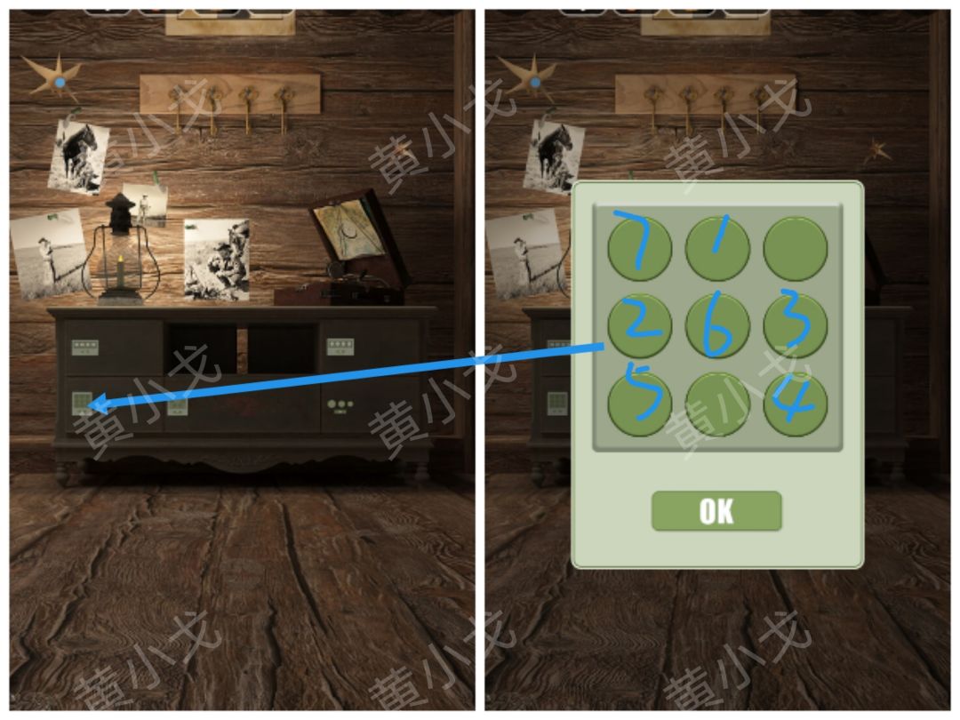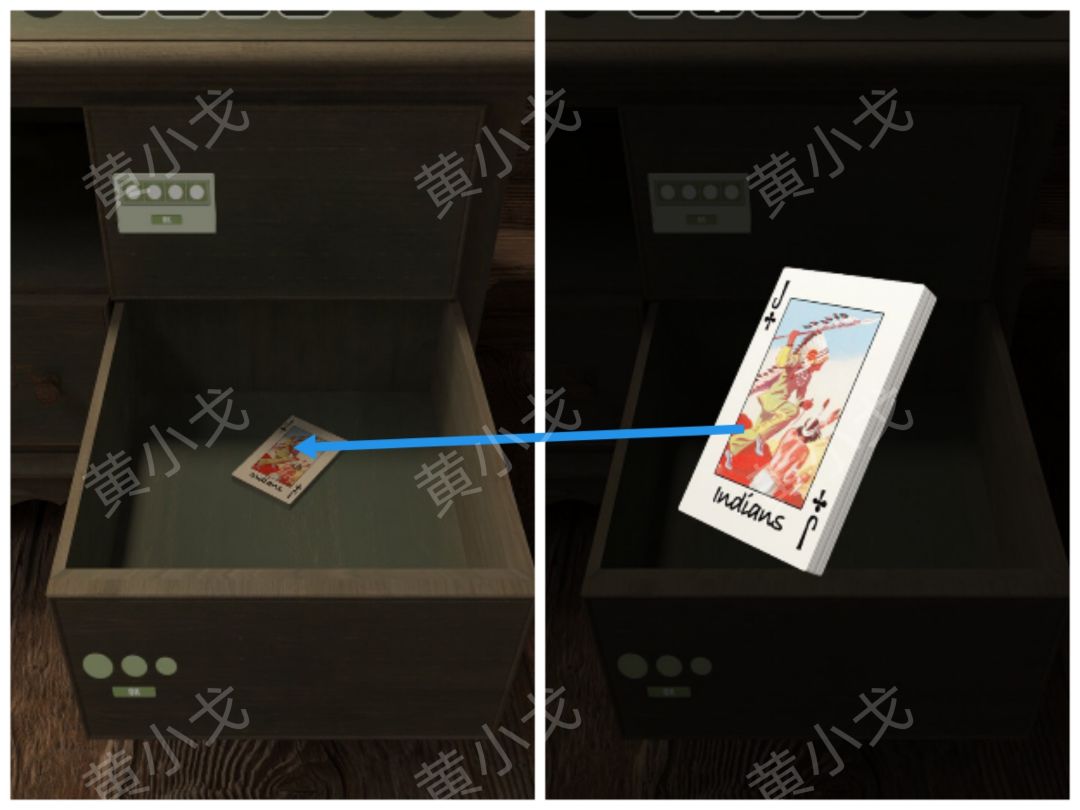 11.点击桌子右下角抽屉上的密码锁,根据[沙漠]场景草团线索,按顺序按下密码锁